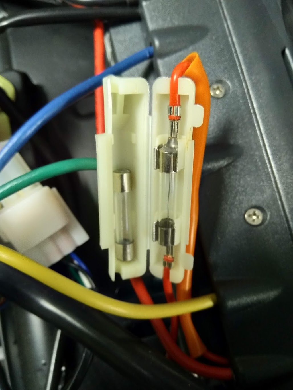 Falls die gefundene Schmelz-Sicherung hinten an einer dicken Leitung liegt, die in den Controller geht und ähnliche Amperewerte hätte, wird die wohl diese Funktion in der Hauptstromleitung übernehmen.