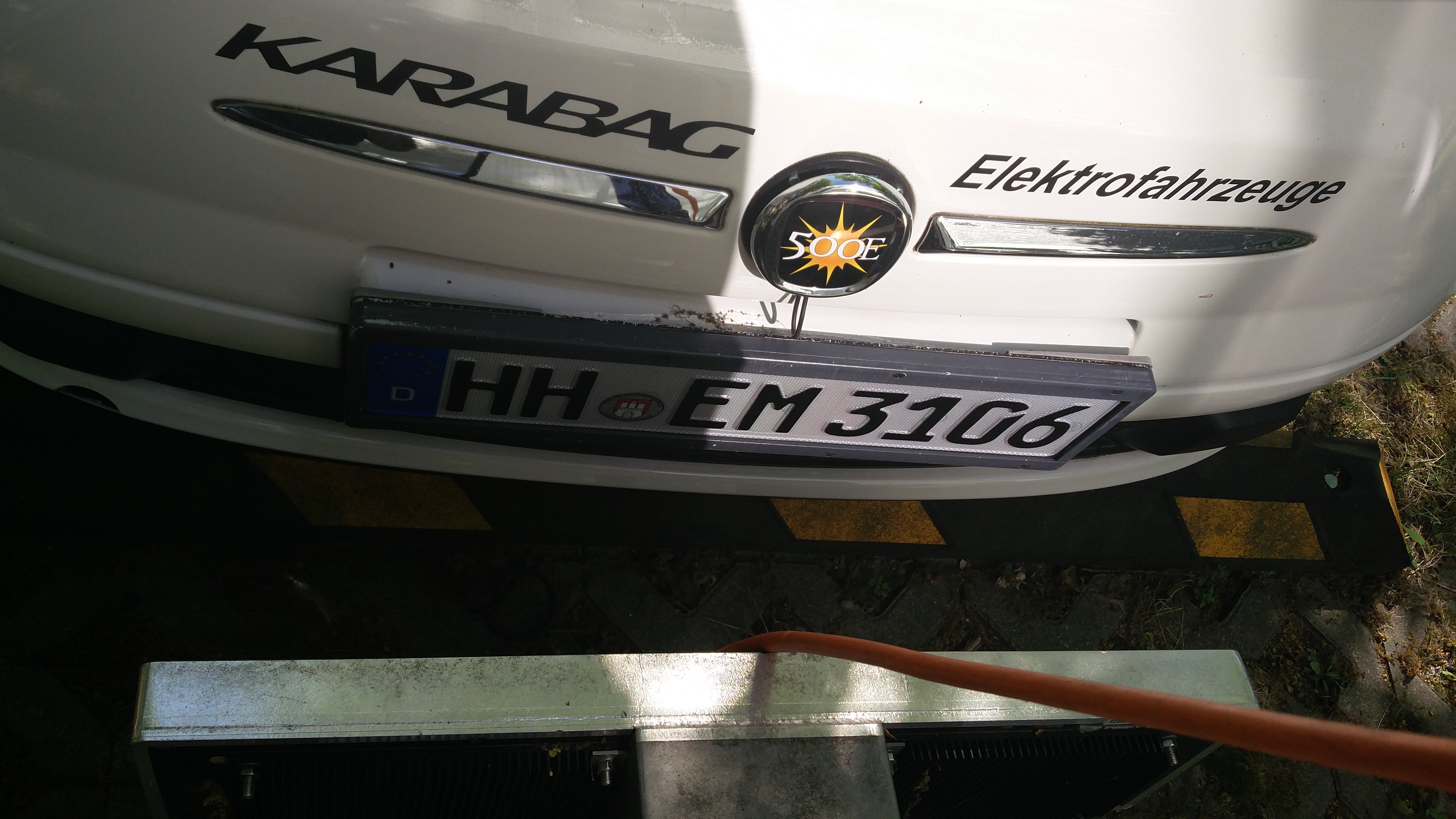 Induktives Laden über den Rahmen des Kennzeichens, das Kabel ist für nicht umgerüstete Fahrzeuge.