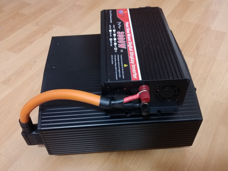 Die Schukodose am Wandler hab ich nachgerüstet, der Chinamann hatte eine etwas seltsame (und für mich bedenkliche) Multifunktionsdose verbaut, wo man beim Einstecken (und man sich blöd anstellt) die Steckerkontakte berühren konnte. Es ist ein 71V-Wandler, der 220 Volt mit 1,5kW liefert. Die 71V scheinen ziemlich exotisch zu sein, viel Auswahl ist bei den Geräten nicht und schon gar keiner mit 230V-Ausgang. Wenn dem Wandler mehr als 1,5kW abverlangt werden, dann schaltet er nach ca. 5 Minuten wegen Überlast ab. Bei 1,5kW läuft er aber natürlich dauerhaft durch. Auch wenn die Batteriespannung zu tief runter geht, soll er abschalten. Einen Hersteller hat das Teil nicht, zumindest ist auf dem Gerät und der Anleitung nicht zu erkennen, wo es her kommt. Aber in der Anleitung steht das auch mit den 1,5kW-Dauerlast - von der Gerätebeschriftung ausgehend, könnte man von der irrigen Annahme ausgehen, dass er 3kW dauerhaft schafft. Ob das Teil eine saubere Sinuswelle abliefert kann ich mangels Oszilloskop nicht testen.