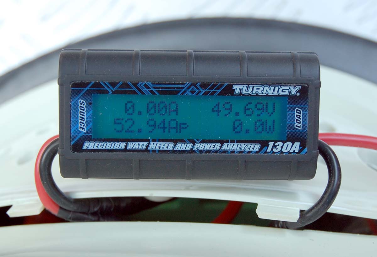Ich habe mir, um das zu überprüfen, einen Modellbau Leistungsmesser direkt hinter die Batterien gehängt ( beim Eco-Flash einfach) und habe u.a. die maximale Stromaufnahme (mit allen potentiellen Ungenauigkeiten incl. Controller +DCDC Wandler + Kabelquerschnitte) bei einer Stadtfahrt (16C°, 4m/s mit Steigungen bis zu 8% und bis zu 150kg Zuladung) gemessen.