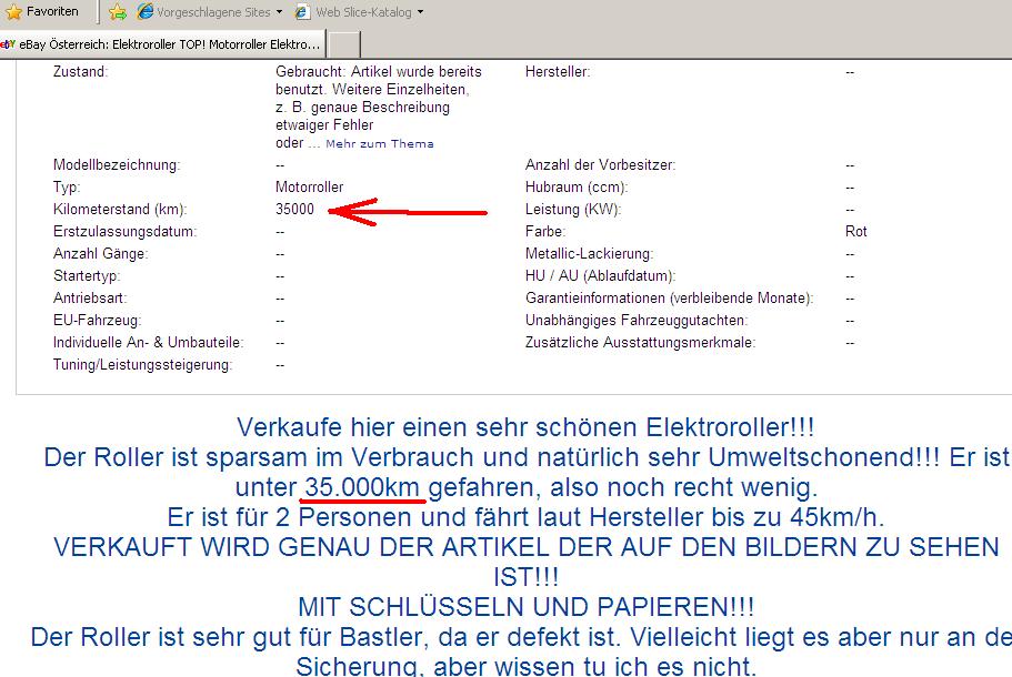 Ist zwar kein E-Roller, aber war bisher die lustigste eBay Auktion, die ich kenne.