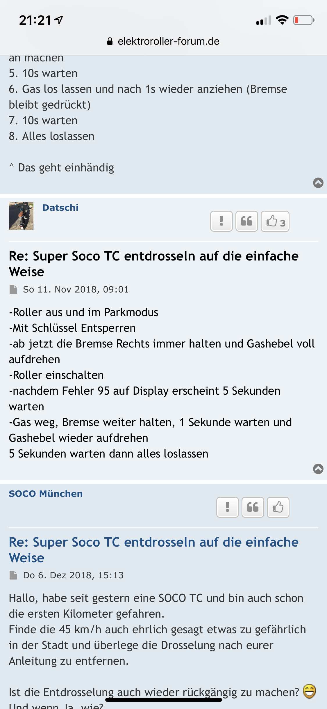 Kann mir jemand weiterhelfen und sagen wie ich meine Super Soco Cux entdrossele?