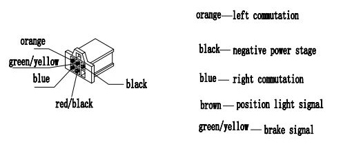 Angriff des Blinkersignals an den Steckern hin zum Lenker. Orange links, blau rechts.