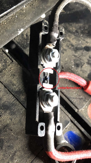 Was ich jetzt gefunden habe, ist eine 60A Sicherung (!), die evtl. durchgebrannt ist, siehe Bild. Kann das die Ursache sein, dass nicht mal geladen wird?