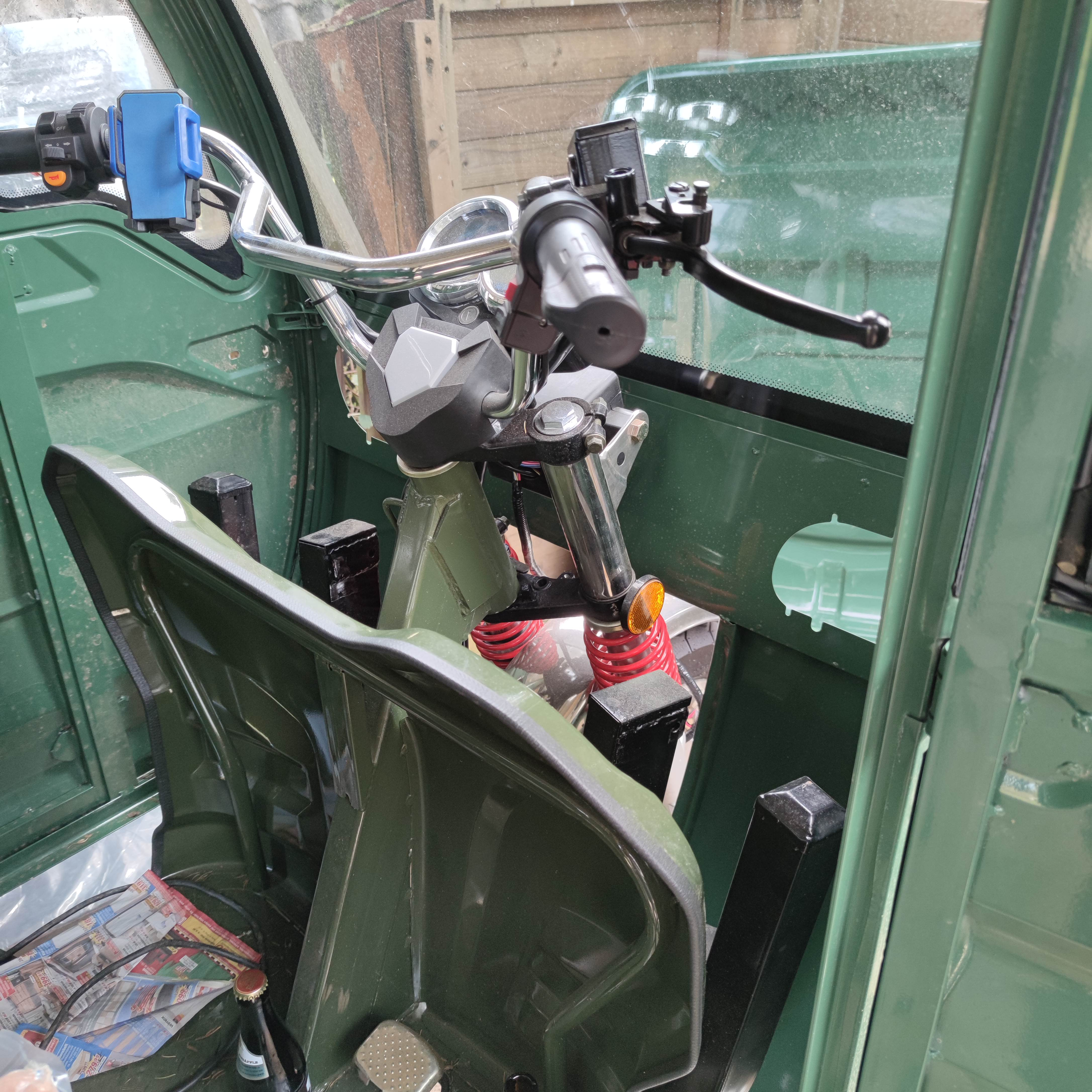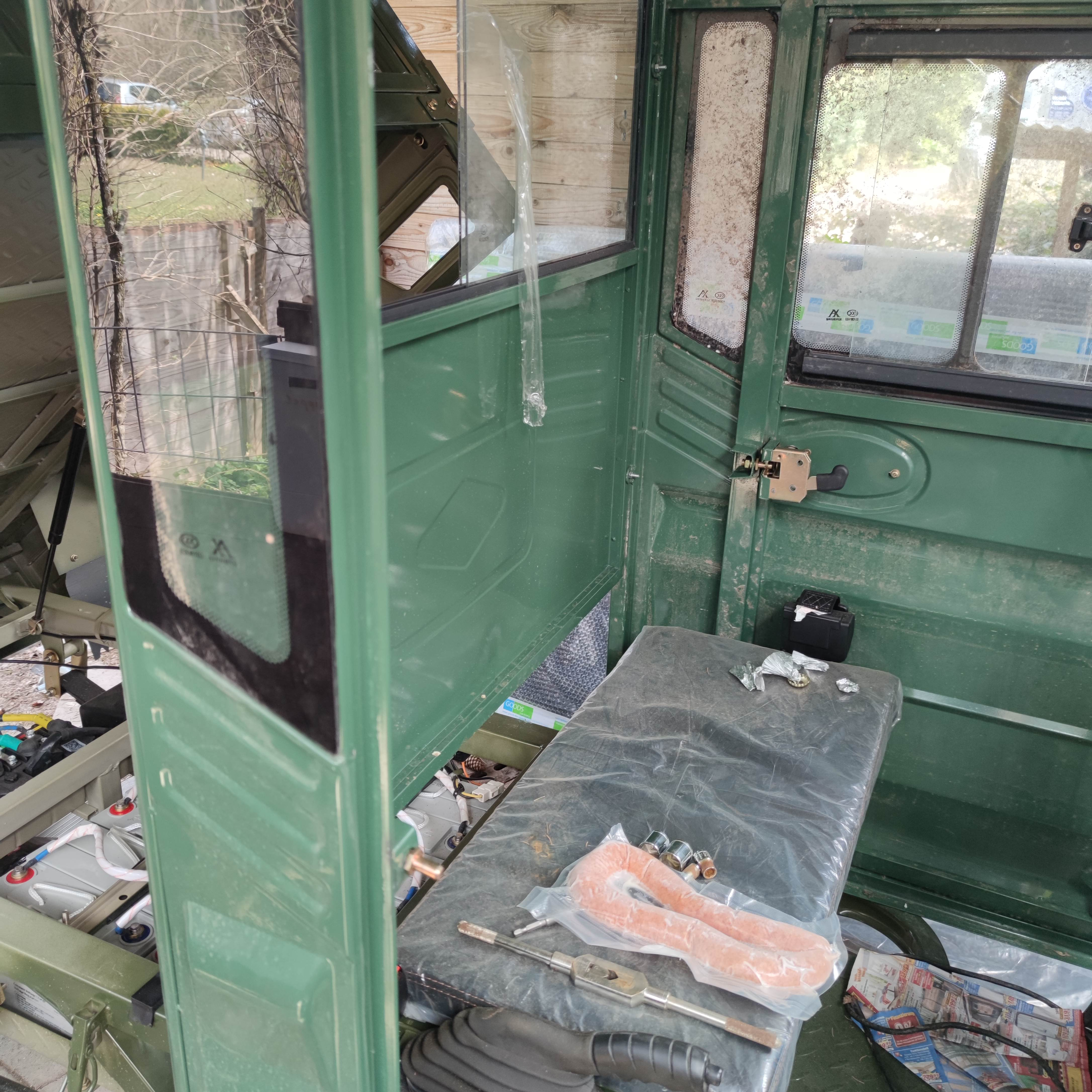 So heute die alte Rückwand entfernt Scheibe drin und roriginal Raumschutz entfernt . Gleich kommt Kollege Karosseriebauer und wir kucken wie wir das Fussblech entfernen können und wie wir vorne Dan noch soviel Luft bekommen das alles freiäuft wegen der großen Gabel .mehr Platz ist jetzt schon hinten am Rücken .