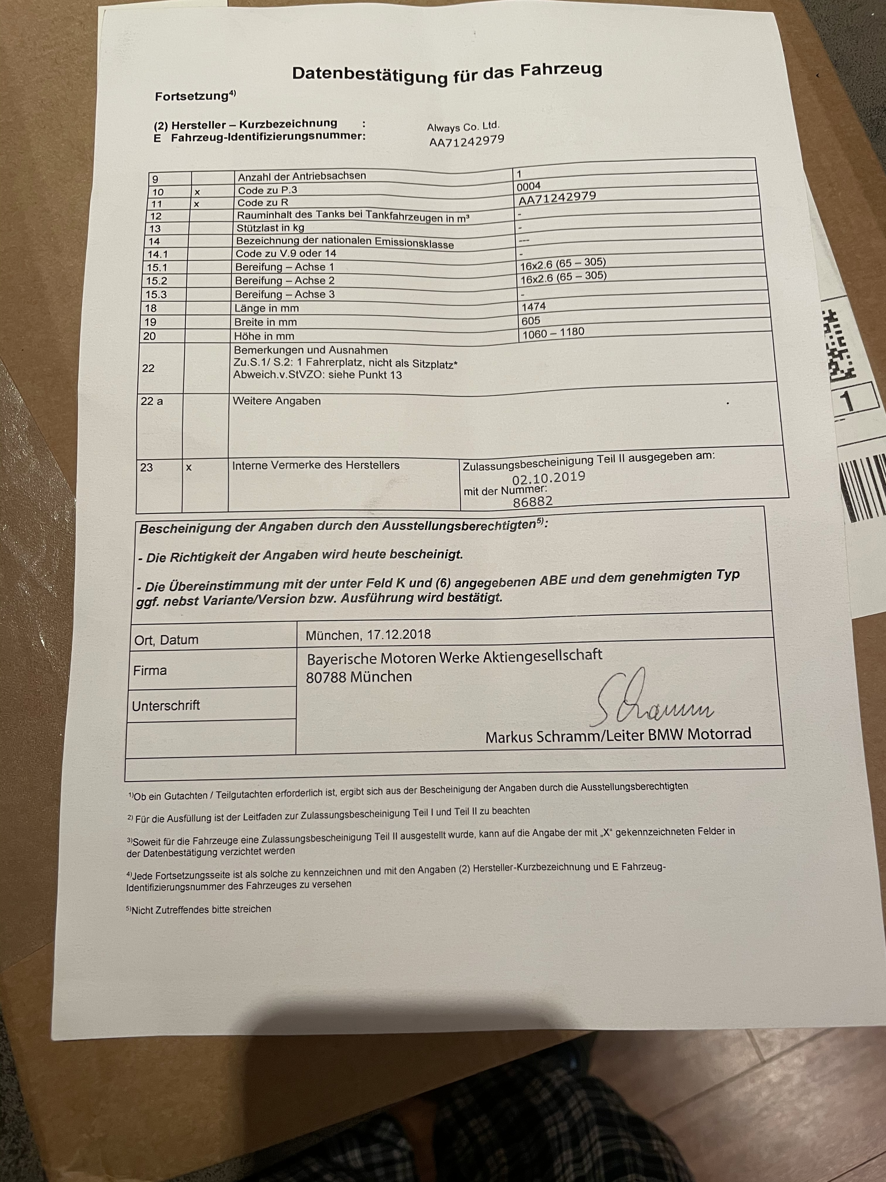 Aber immerhin kann ich ihn nun zulassen und damit fahren. Mal schauen was die sagen.