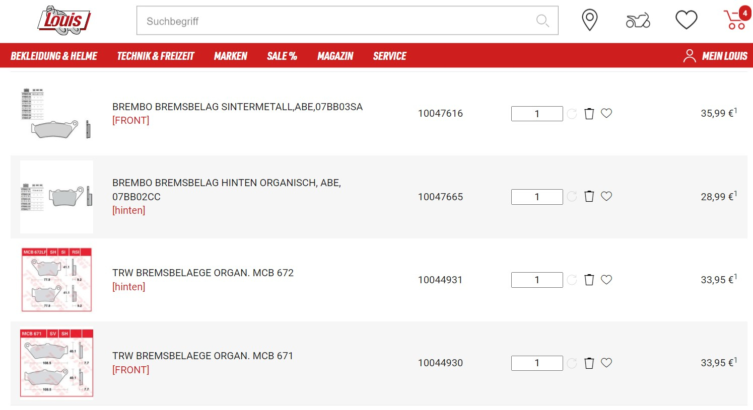 Hatte sie die Tage bei März in Ettlingen. Die haben die Standard-Prozedur für quietschende Bremsen angewendet, also Anti-Quietsch-Folie (sauberes Pendant zur Kupfer-Paste) auf die Backen geklebt.