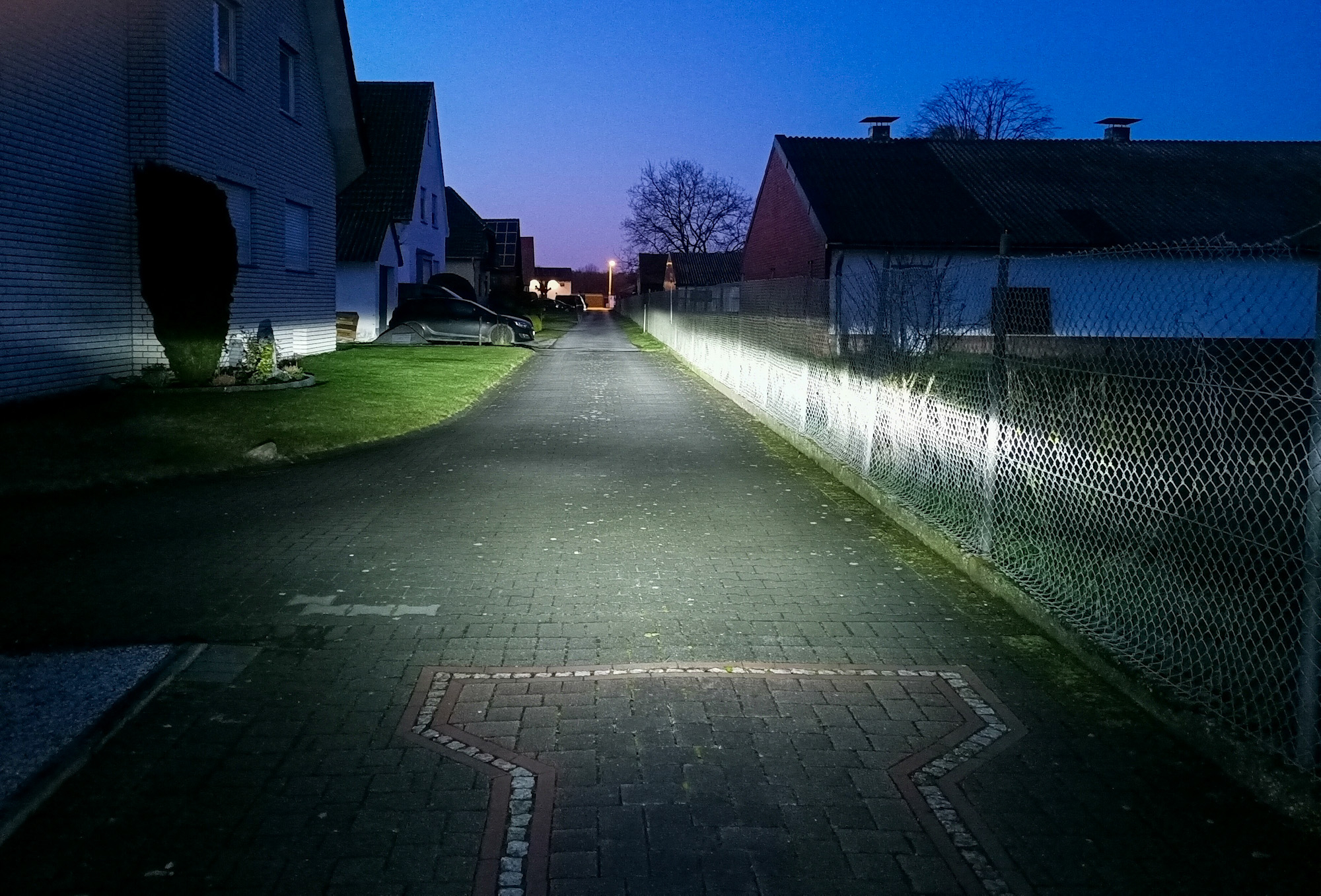 Wenn das dem Augenschein entspricht ist das natürlich ein grandioses Lichtergebnis! Wobei der leichte Schatten in ca. 15m Entfernung immer noch deutlich ist.