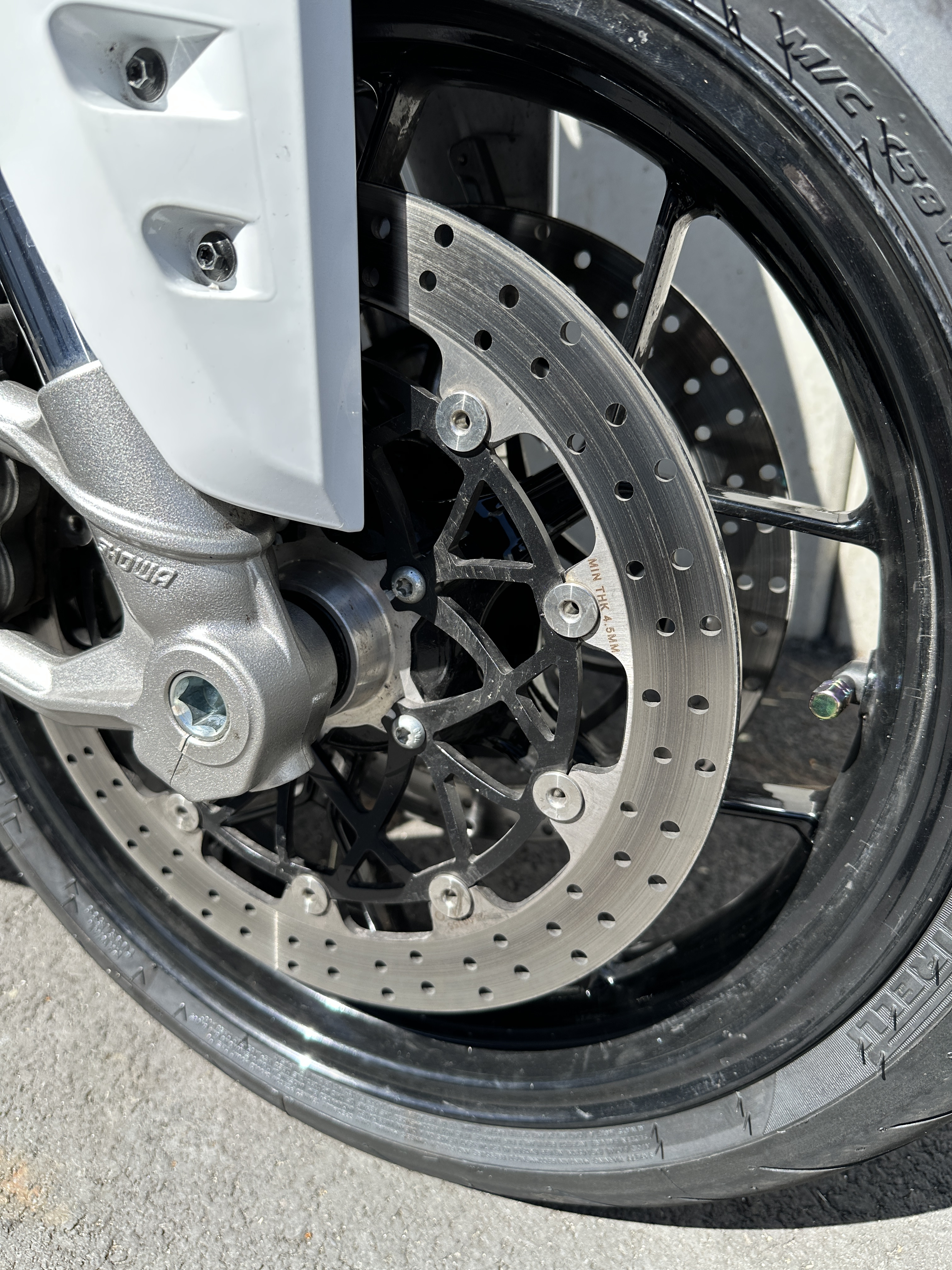 Gesten gab es auf Garantie neue Bremsscheiben vorne. Die alten hatten dann doch dieses "Rubbel" und Vibrationen bei Bremsungen bei hoher Geschwindigkeit. Die sehen anders aus als die alten. Made in UK steht drauf.