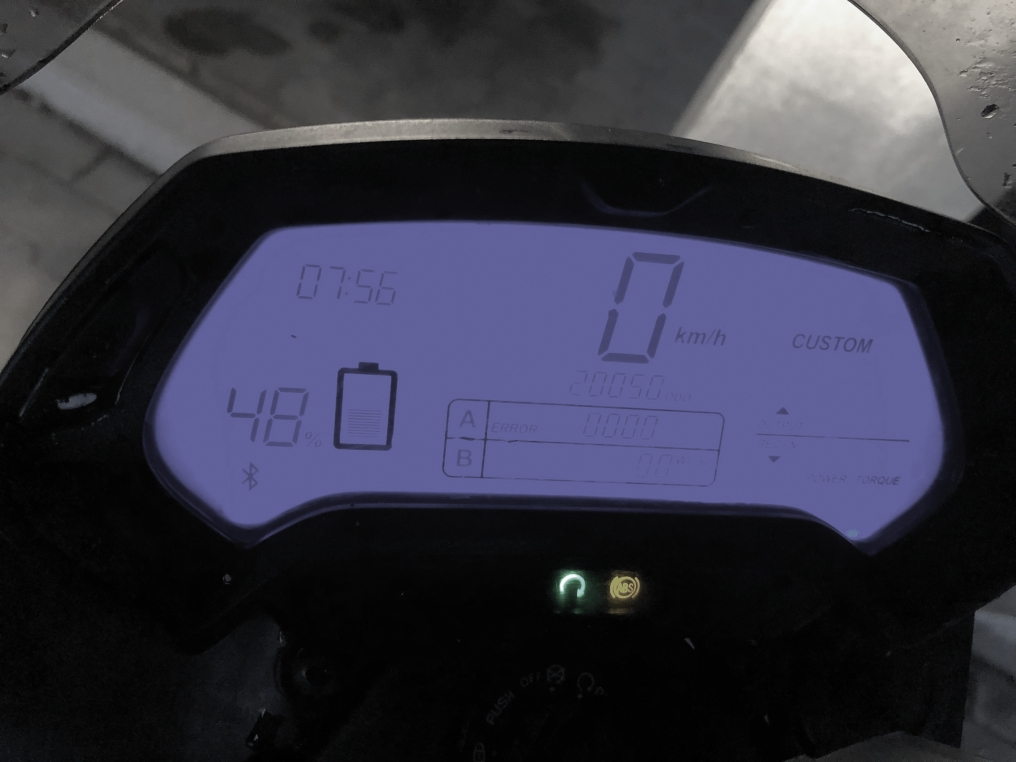 Da liegt ein Missverständnis vor: Die Zero S Anzeige hat zwei übereinander liegende Digitalanzeigen A und B, die vom Fahrer durch verschiedene Anzeigemodi geklickt werden können. Diese werden dann dauerhaft darin dargestellt. Im oberen Feld A ist die Fehleranzeige eine der Anzeigenmodi, die ich natürlicherweise bei Einsetzen des Blinkens vom roten Warndreieck einschalte, um zu sehen, welcher Fehler das verursacht.