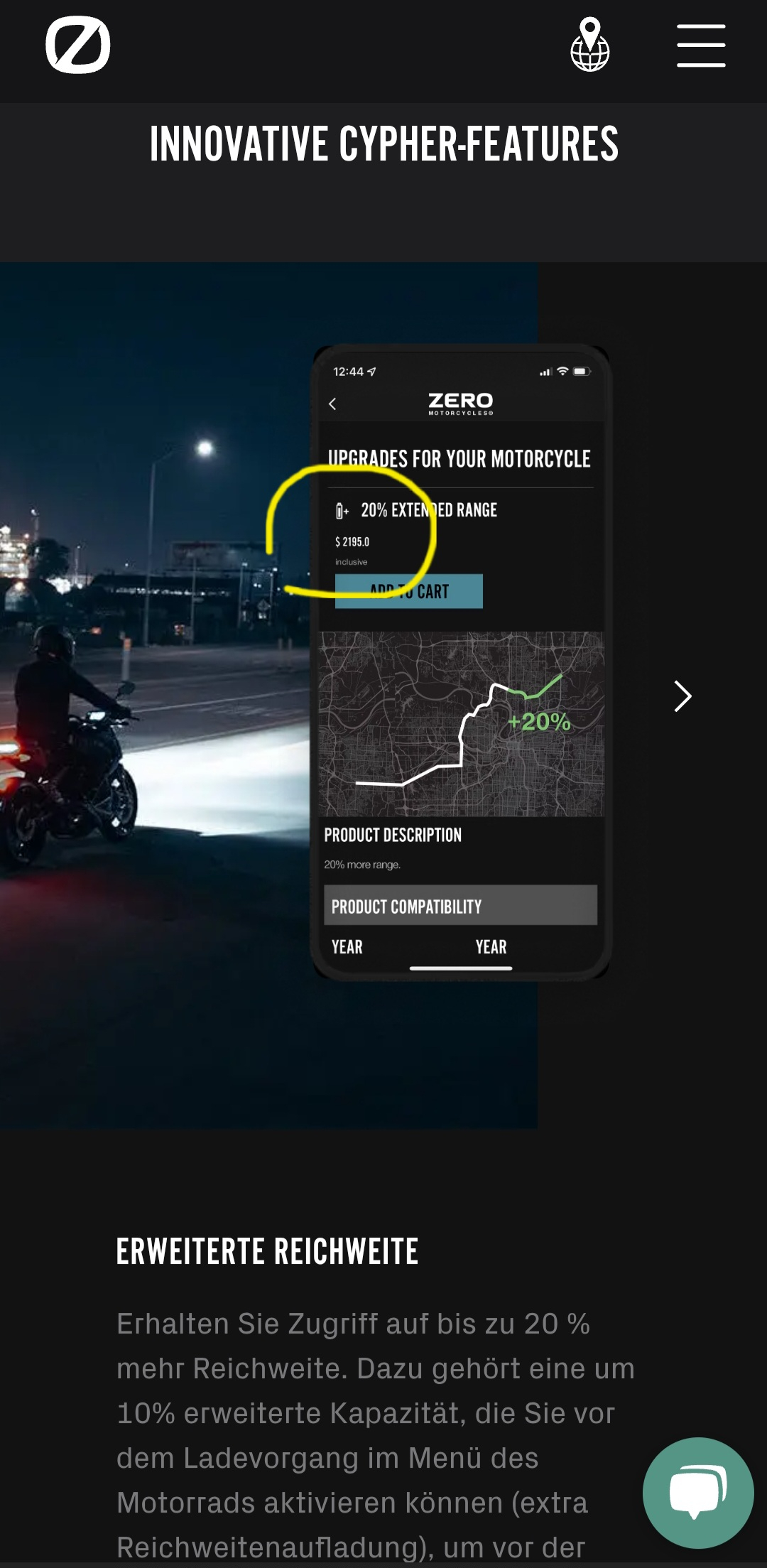 Bei der S kann man im Zeroshop entweder nur den Power Tank oder den 6 kW Rapid Charger dazukaufen.