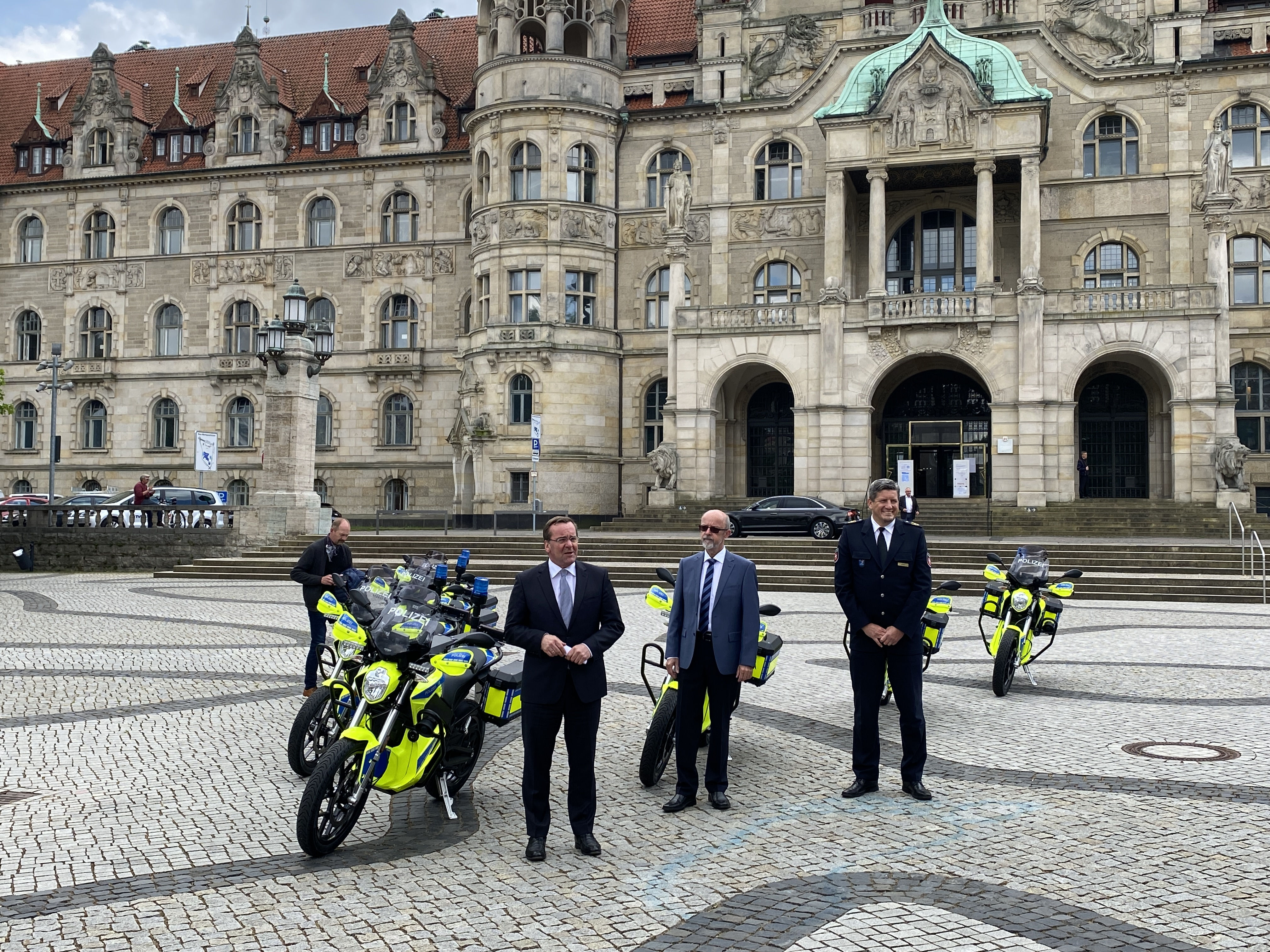 Im Beisein von Innenminister Pistorius und vor imposanter Kulisse durften wir heute acht weitere Elektromotorräder an die Polizei Niedersachsen übergeben, die damit ihre bundesweite Führungsrolle weiter ausbaut.