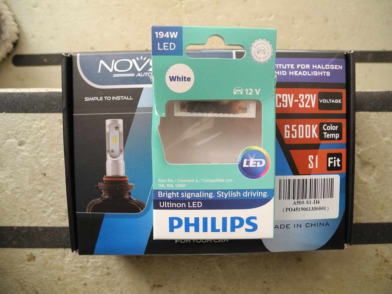 Also ich habe die Packungen der LEDs fotografiert. Die Headlight LED und die kleine Standlicht LED von Philips.