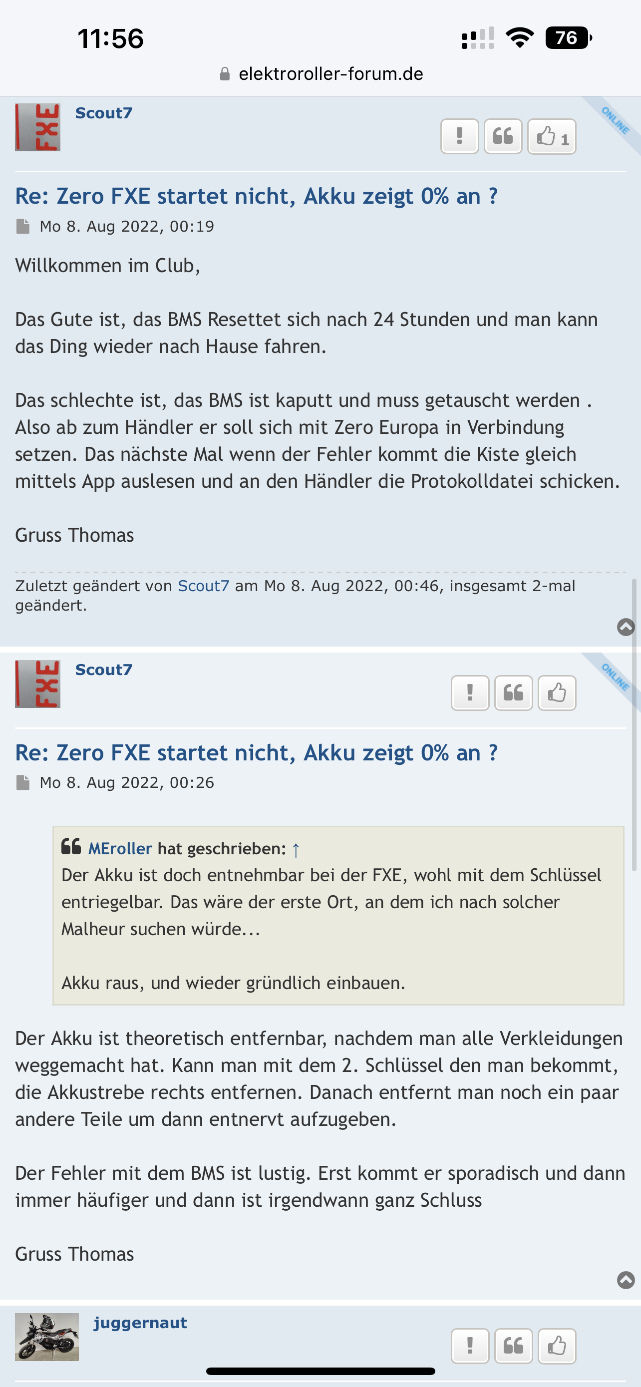 Damals hat man die Ladeempfehlung geändert. Ursprünglich sollte man die Zero so oft und lange wie möglich am Netz lassen.