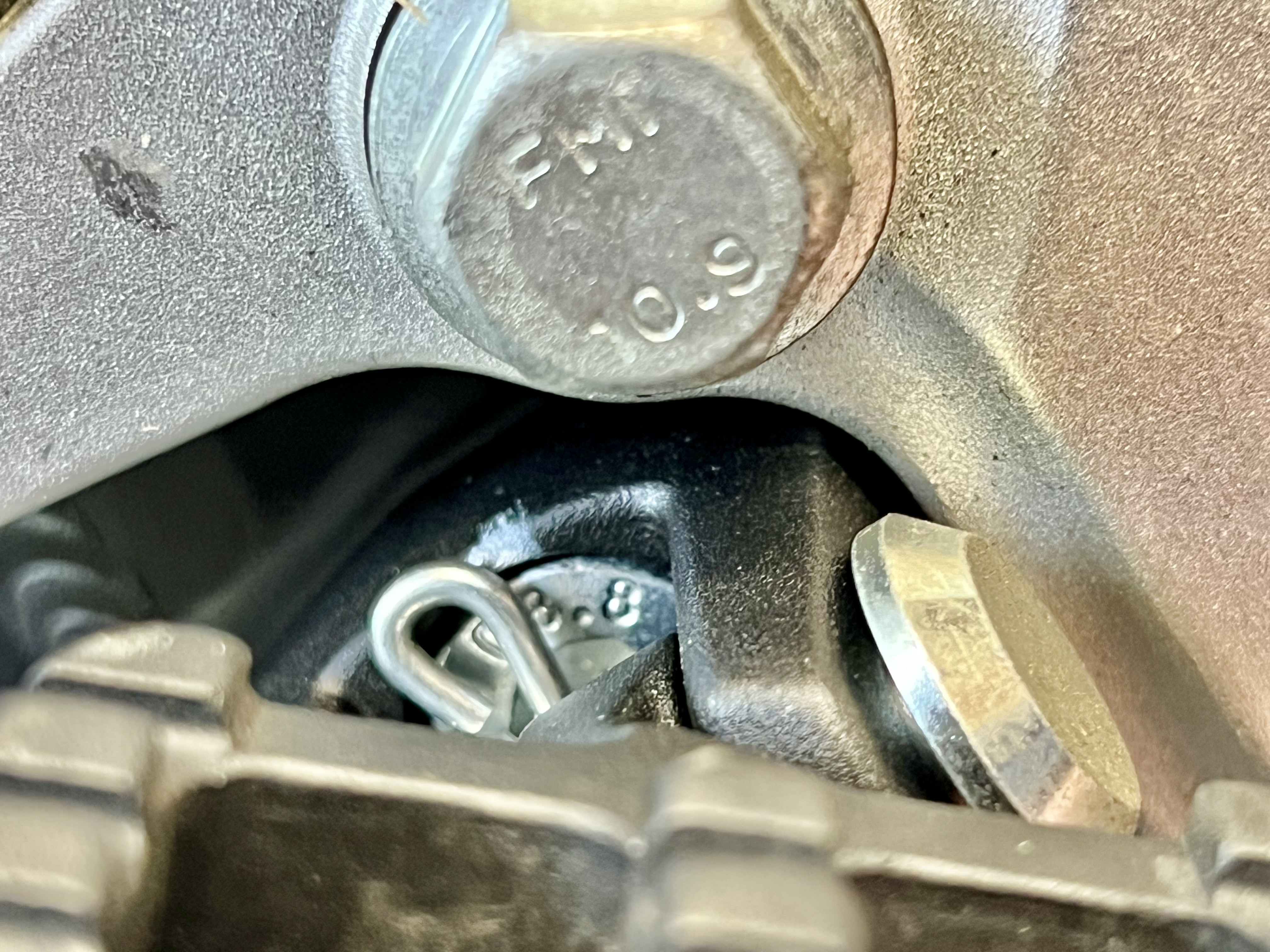 Hier sehe ich erst mal keine andere Möglichkeit, als die Kolbenstange wieder einzudrehen, den Fussbremshebel dadurch im Bild gegen Uhrzeigersinn zu drehen, dass das Pedal wieder hoch kommt und mehr Luft zur Fussrastenaufnahme besteht. Konstruktiv blöd gelöst, weil ich nun den Fuß zum Bremsen von der Raste nehmen muss, um oben auf die Fläche zu drücken. :evil: