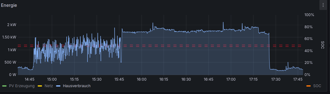 (Hier wird der zwar der gesamte Hausverbrauch angezeigt - aber sonst gab es definitiv nur Grundrauschen von ~300W im Haus.)