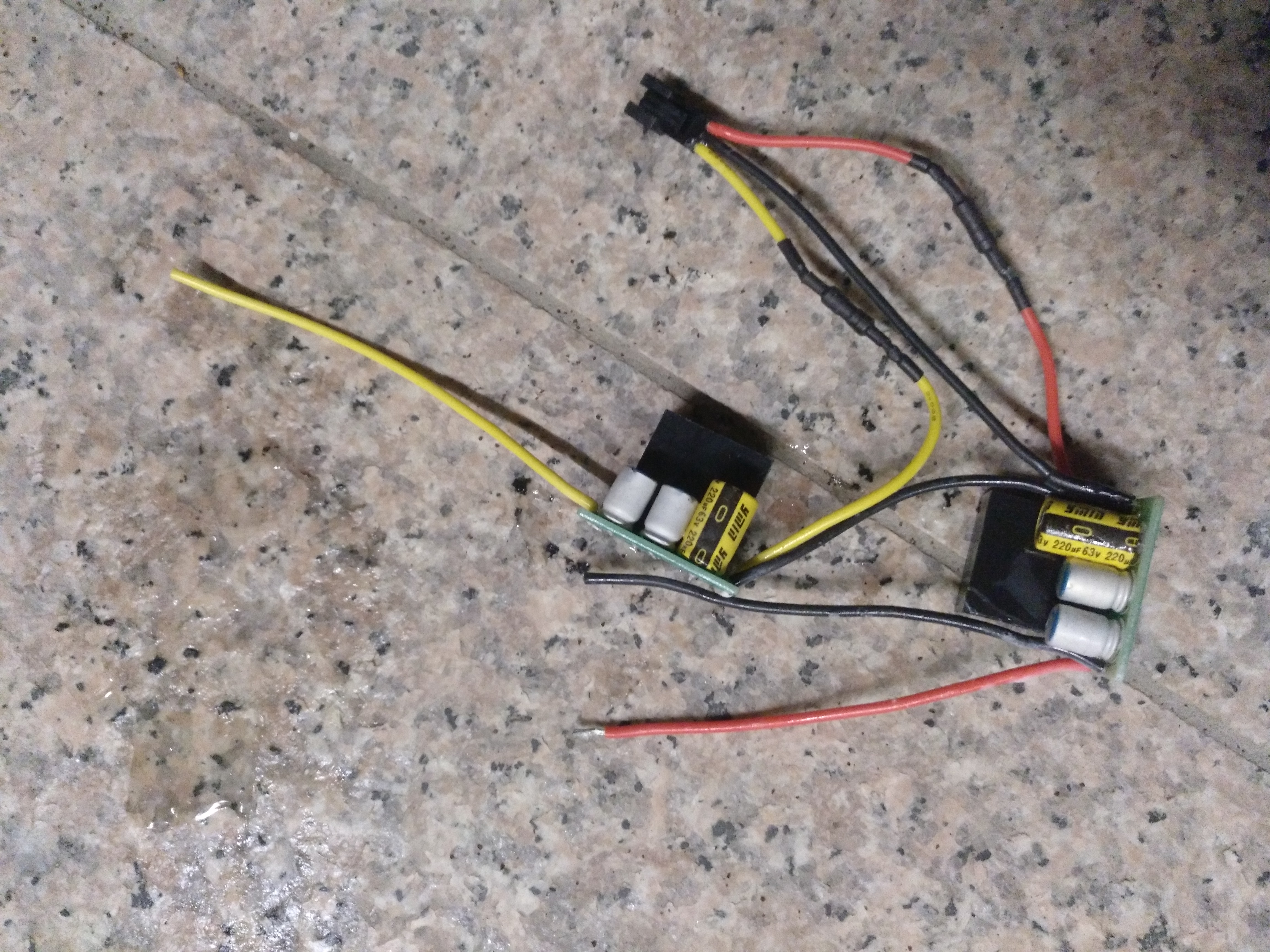Der Verkäufer bietet auch einen schnellen Versand an, der nur 2 Wochen braucht (1€ Aufpreis). Ich habe die gesamte Platine mit Isolationsspray isoliert, da die Hülle nicht dicht ist. Leider ist ein Converter defekt, daher funktioniert das Bremslicht noch nicht. Habe jetzt aufgrund der kurzen Lieferzeit ein Relais für das Bremslicht gekauft, welche die 12V des Konverter-Ausgang auf das Bremslicht schaltet: