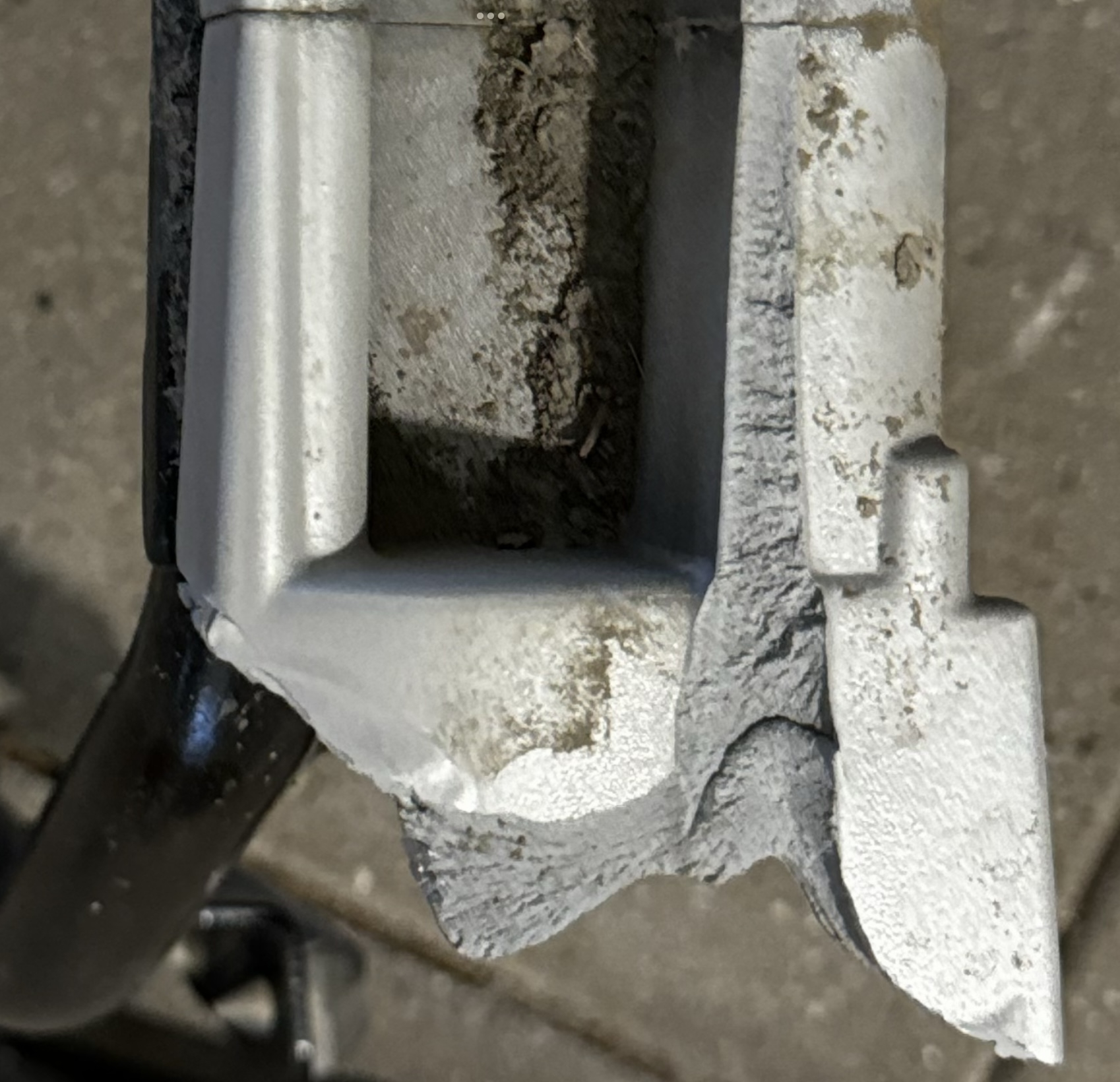 Ich war genervt, dass nach einigen Jahren Ganzjahresfahren wegen dem winterlichen Salz mein Hauptständer am eSprit Fury schlicht abgerostet war, aber an einem recht neuen premium E-Roller solcher Gewaltbruch in einem Alu-Rahmenteil ist ja nur noch erschreckend, denn was passiert, wenn da noch mehr zerbricht?!