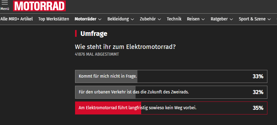 Siehe die Umfrage auf einer deutschen Motorrad-Zeitungs-Seite: