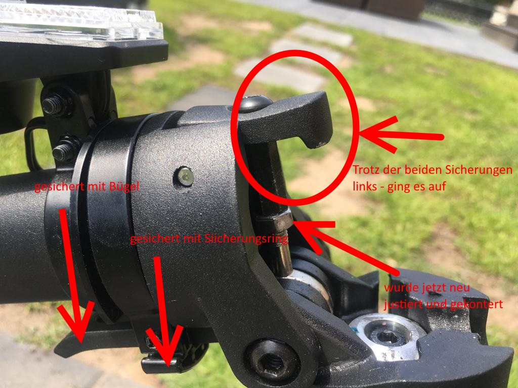 Aber es gehört sich definit NICHT, dass ein korrekt eingerasteter und gesicherter Scooter in voller Fahrt zusammenklappt