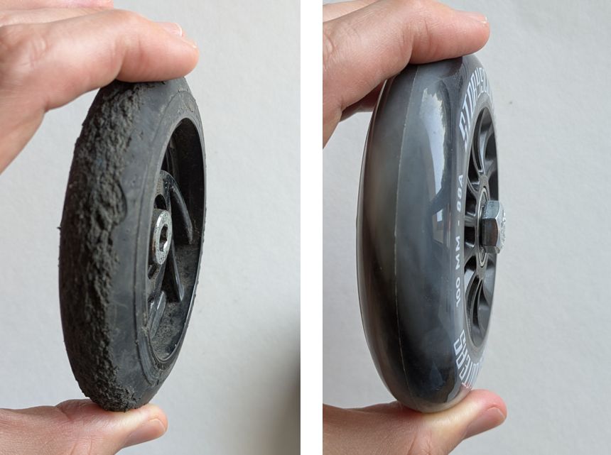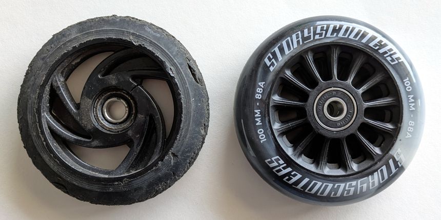 Ich nehme mal an, dass das bei den Kickscooter-Rollen so genormt ist, und dass es daher bei anderen Exemplaren so ähnlich aussieht. In jedem Fall hatte ich aber keine Lust, nochmal einen neuen Satz Räder zu kaufen.
