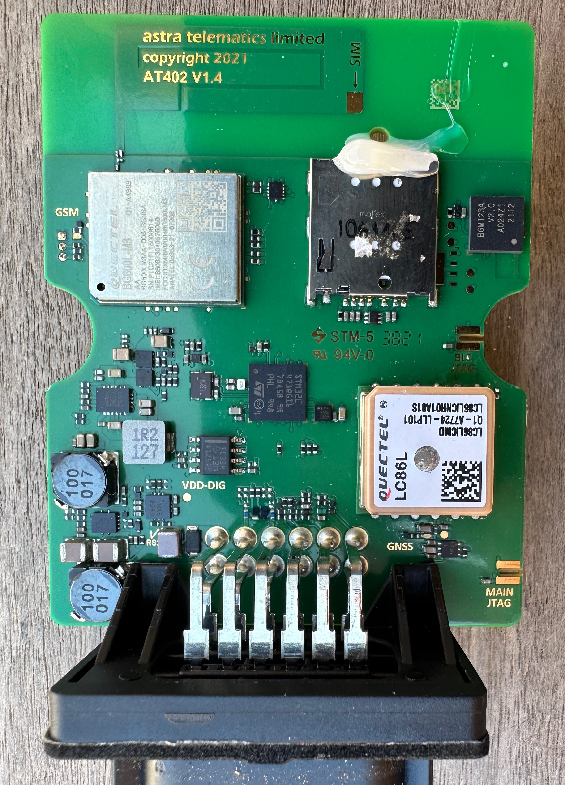 Wenn das Modul schon ausgebaut ist, kann man dies einfach mal an den Stecker anschließen. Falls dann die Betriebsspannung am Modul anliegt, sollte dieses booten. Nach ca. 1-2min kann man dann, wie im User-Guid beschrieben, an Hand der LED's den Status der GPS- und Netzwerkverbindung ablesen.