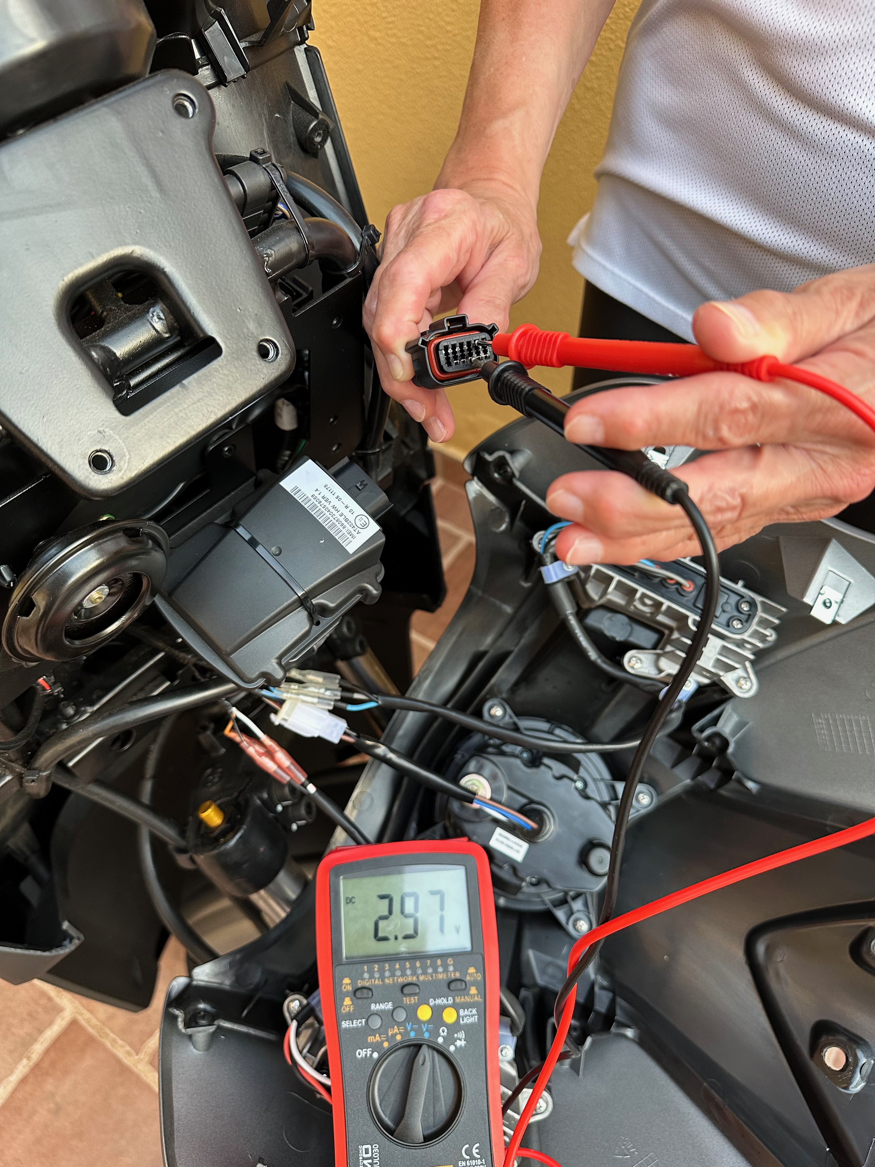 Danke für das Handbuch. Der Li-Akku der TCU hat keine Spannung mehr. Bei ausgeschalter Silence liegt an weiß (Pin 4) offensichtlich nur eine Spannung von 2,97 V an (siehe Bilder). Das dürfte wohl zu wenig sein, um den Li-Akku auf 3,7 V zu halten. Was müsste da an Spannung messbar sein? Ich habe jetzt ein Li-Akku-Ladegerät bestellt. Das wird auf Fuerteventura aber wohl erst nach meinem Werkstatttermin am Mittwoch nächster Woche kommen. Zudem ist dieser Li-Akku ja jetzt sicherlich tiefentladen und "tot".