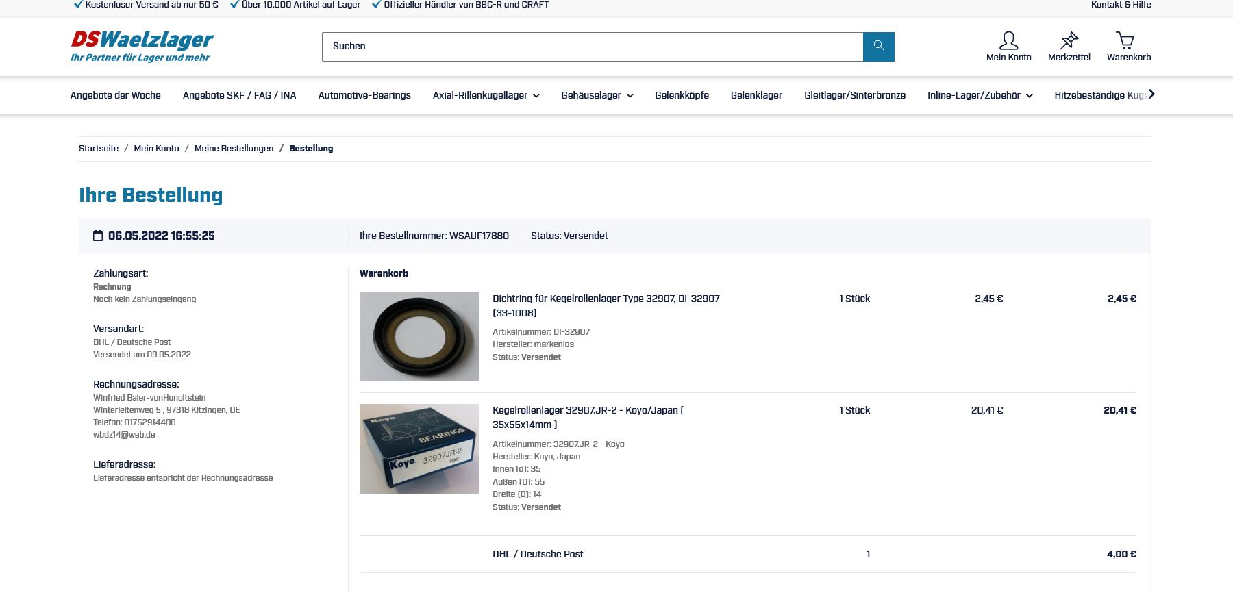 Kompliziert ist relativ. Ich kenne kein solches Geschäft in meiner Nähe, müsste also auch danach zuerst mal suchen. Außerdem muss ich zu der üblicherweise engeren Öffnungszeit, wo solche Geschäfte üblicherweise offen haben, arbeiten. Kugellager habe ich bisher immer online bestellt. Und der Typ 32907 scheint mir doch seltener zu sein, es gibt genug Online-Händler, die diesen Typ nicht haben. Dichtringe in der Form, wie wir ihn brauchen, haben auch nicht alle. Mancher Hersteller/Großhändler hat den Typ 32907 nicht mal in seinem Standard-Katalog.