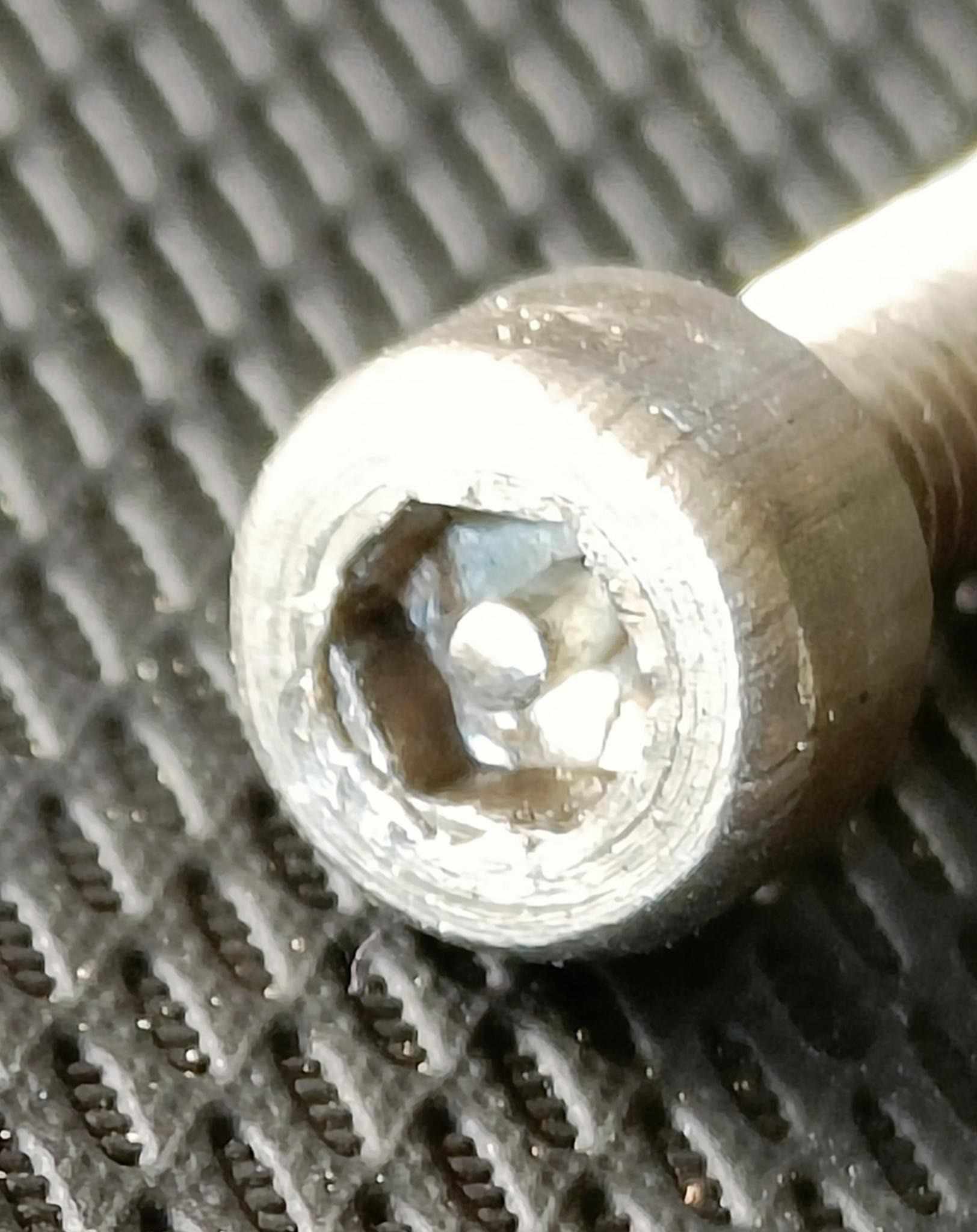 Mit dem 4mm Innensechskant ist richtig, ABER waren bei mir 2 Schrauben mit Zapfen/Stift/Pin verbaut :o . Hier hat dann ein alter Schlüssel des allseits bekannten Möbelhauses herhalten müssen um die entsprechende Bohrung zu bekommen. Das Material des Schlüssels ist halt weicher als herkömmliche Bits, um zu bohren.