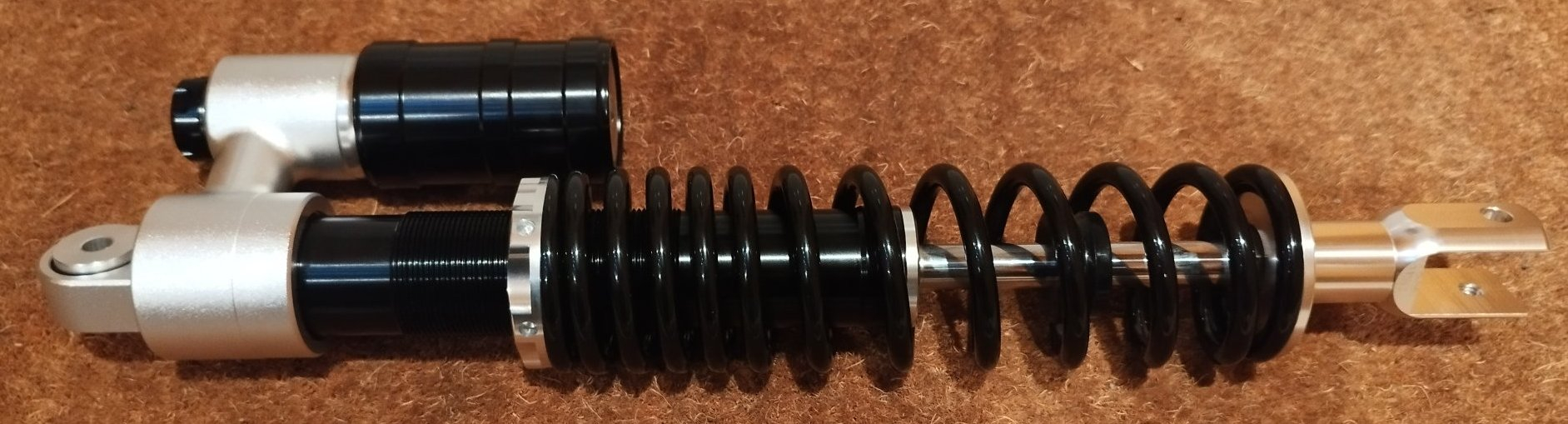 Ach, ich vergaß noch zu erwähnen, dass entgegen dem Servicehandbuch alle Schrauben SW 13 sind. Im Original- wie im +-Dämpfer gibt es unten ein Gewinde auf einer Seite, da habe ich dann wechselseitig mit dem empfohlenen Drehmoment angezogen. Unten ist eine dämpfende Hülse an der Schwinge, oben befindet sie sich im Stoßdämpfer selbst. Der fertig montierte Dämpfer hat jedenfalls etwas Spiel.