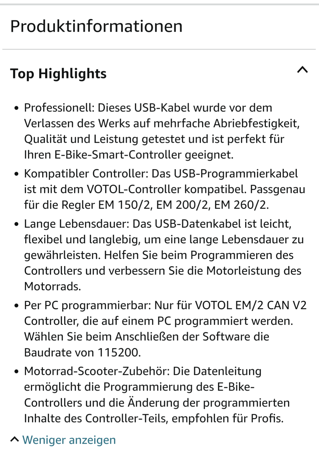Also bei meinem Adapter war ganz klar "für EM150/2" in der Beschreibung, mit dem Hinweis: "Nur für VOTOL EM/2 CAN V2 Controller, die auf einem PC programmiert werden. Wählen Sie beim Anschließen der Software die Baudrate von 115200."