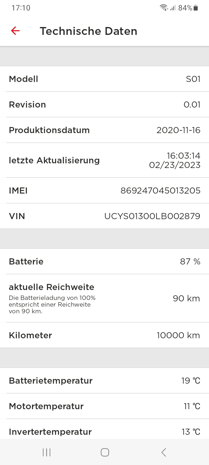Aperto hat geschrieben: ↑Di 10. Jan 2023, 22:31Hallo Nobelhobel,Nobelhobel hat geschrieben: ↑Mi 3. Aug 2022, 14:38Heute morgen hatte der Roller wohl keine Lust mehr mich zur Arbeit zu bringen. Ich hatte ihn über Nacht an der Steckdose, also Akku ist bei 100%! Schlüssel rum und er fährt ganz normal hoch. Akku 100%, 104km Reichweite im City-Modus. Soweit alles gut. Bremse und Mode gedrückt ... nichts.