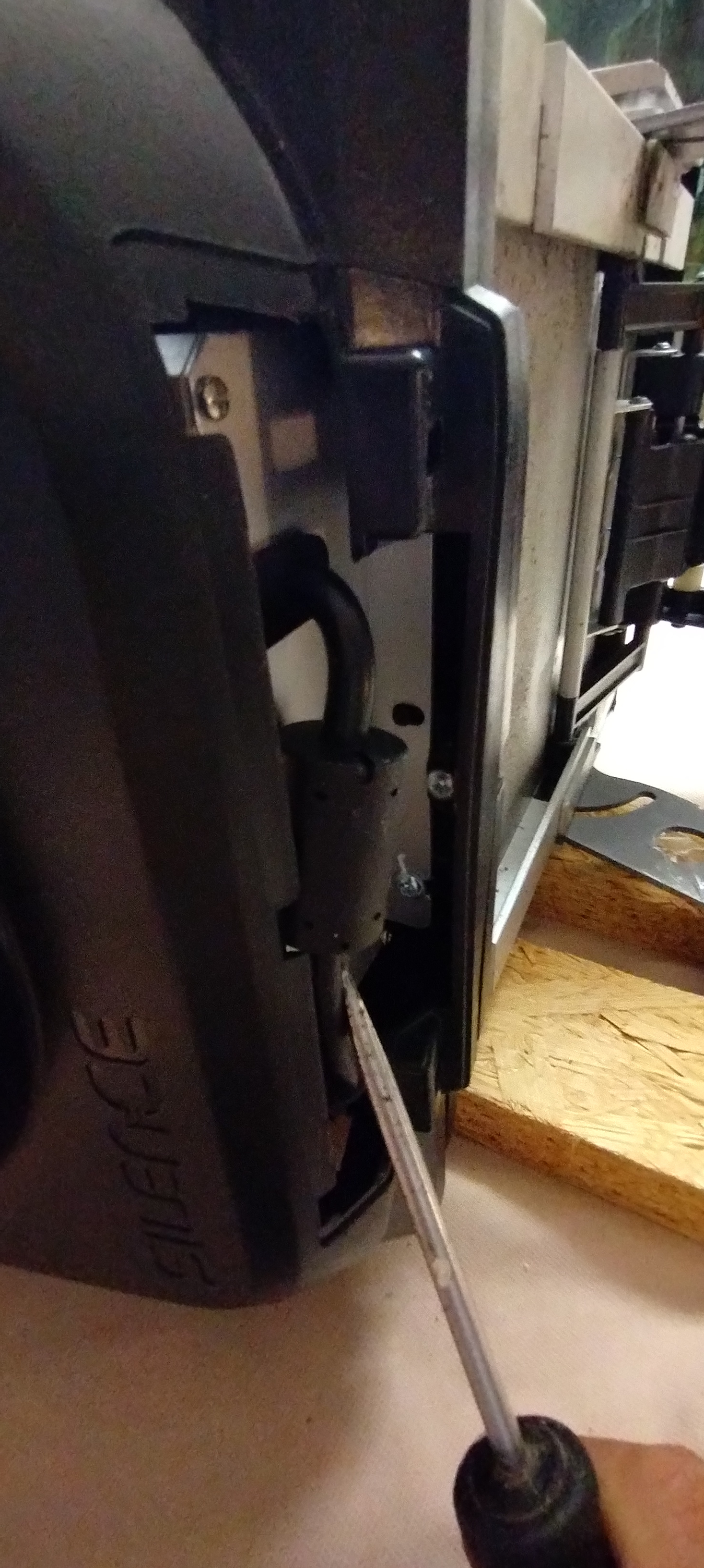 Beim Abnehmen des Covers sind oben in Stangennähe 2 Schrauben rauszudrehen und ganz unten eine 10 Plastikkappe abzuklippen --- darunter ist eine weitere Schraube zu lösen.