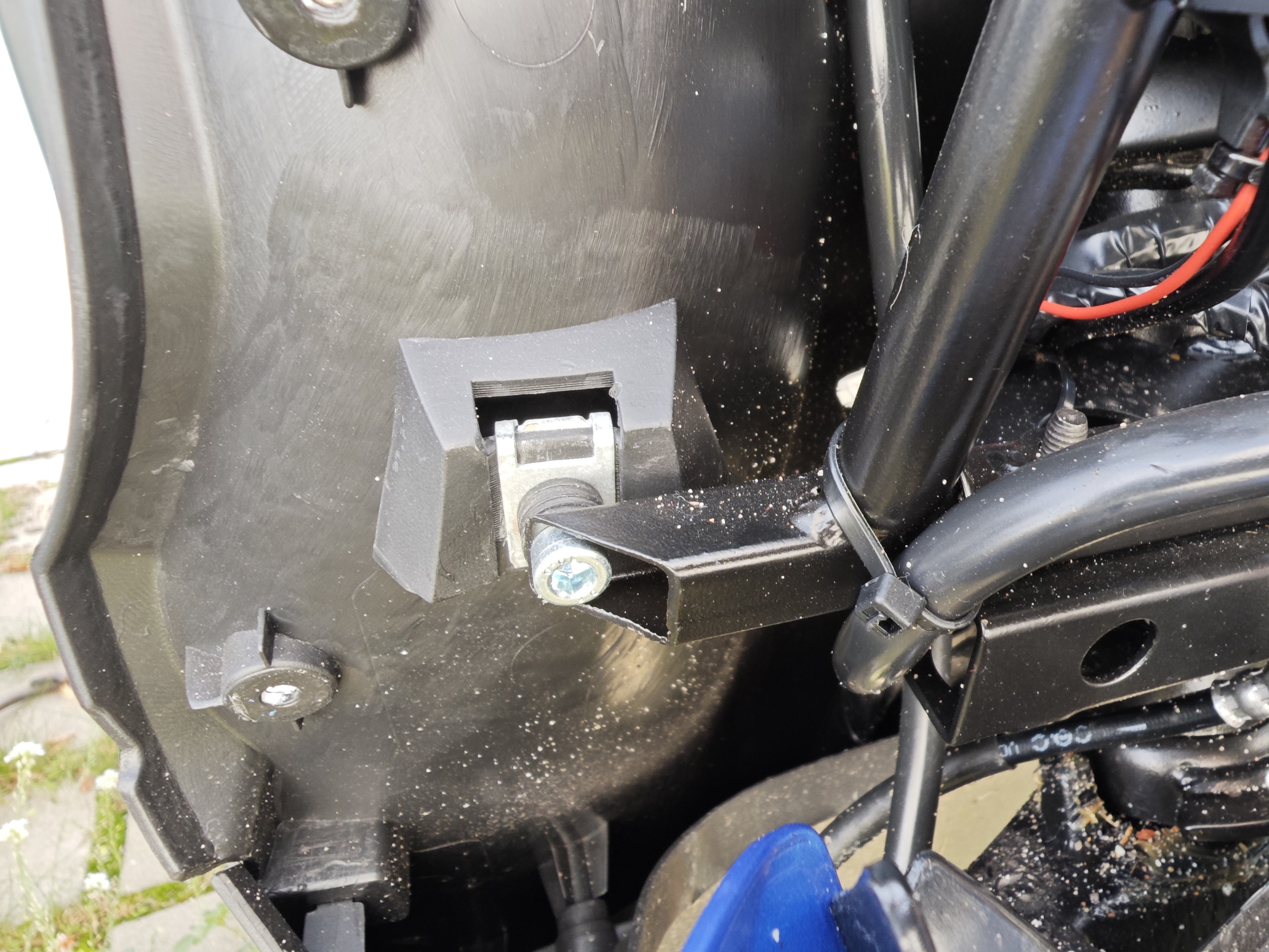 Die Bremsleitungen klopfen auch noch so wunderbar an die Beinschürze aus Kunstoff, kein Wunder also dass die Geräuschkulisse so ist wie sie ist... ich überlege, da mal selbstklebende, dünne Moosgummi-Stücke and die Plastikwand zu kleben, damit es zumindest mal etwas gedämpft wird vom Geräusch.