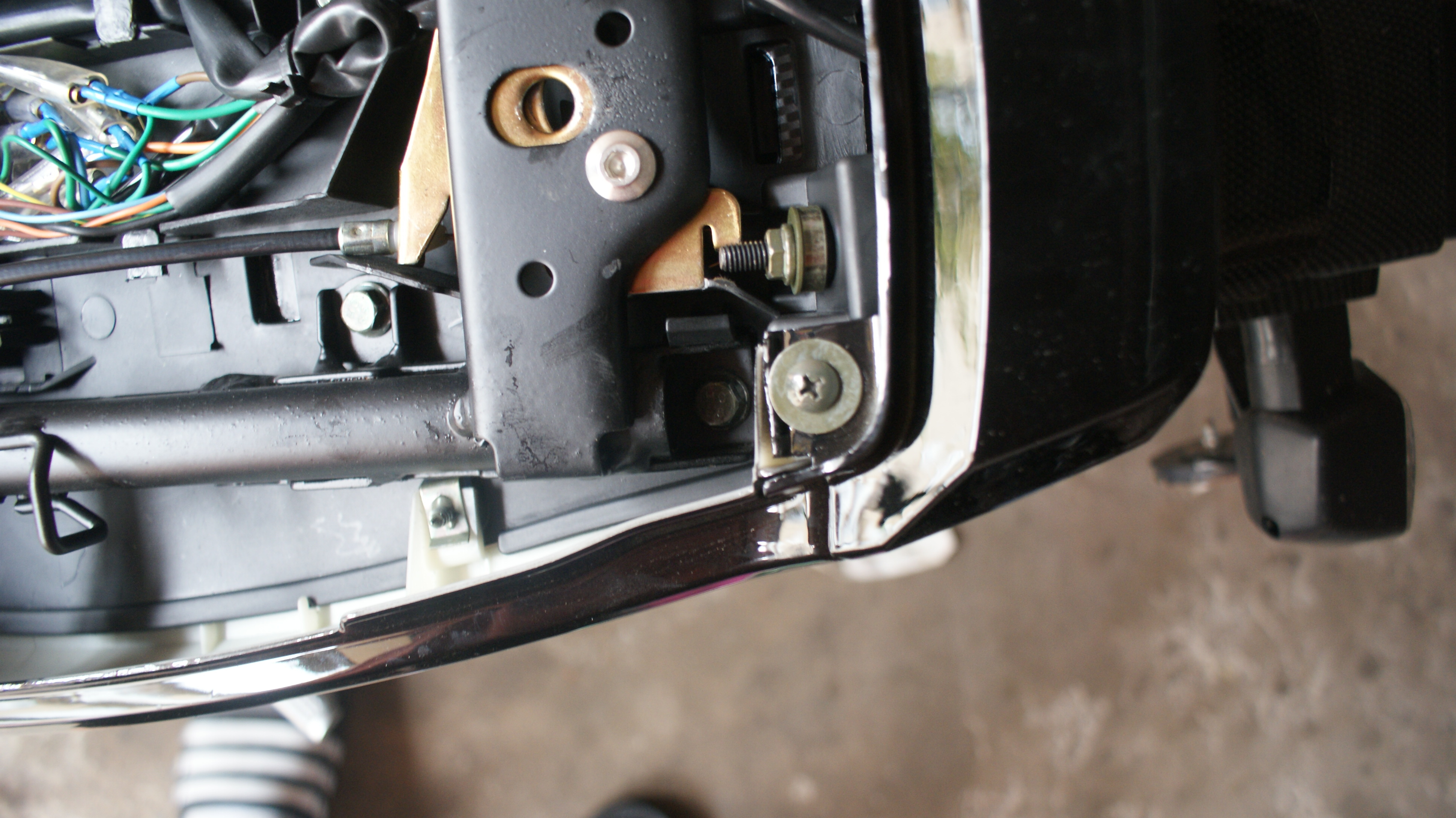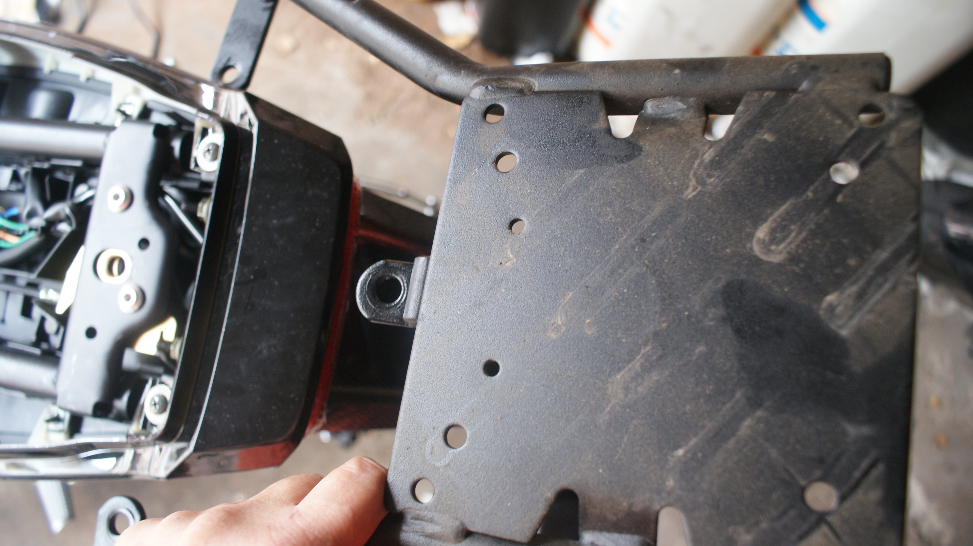 Meine Original Top Case Träger Platte von Kymco, ist auf einem Unterteil verschraubt, welches in einem Y ausgeführt ist.