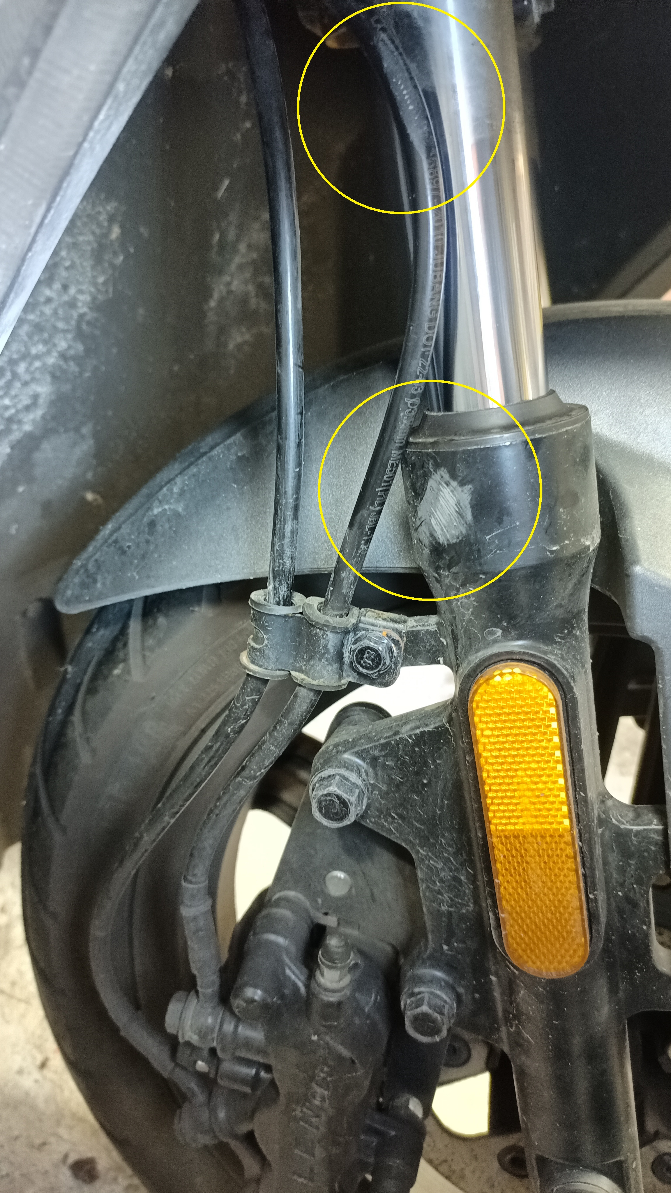 Bei der oberen Bremsleistungs-Führung dem Drahthaken (nicht auf dem Foto ersichtlich), scheuert es ebenfalls….