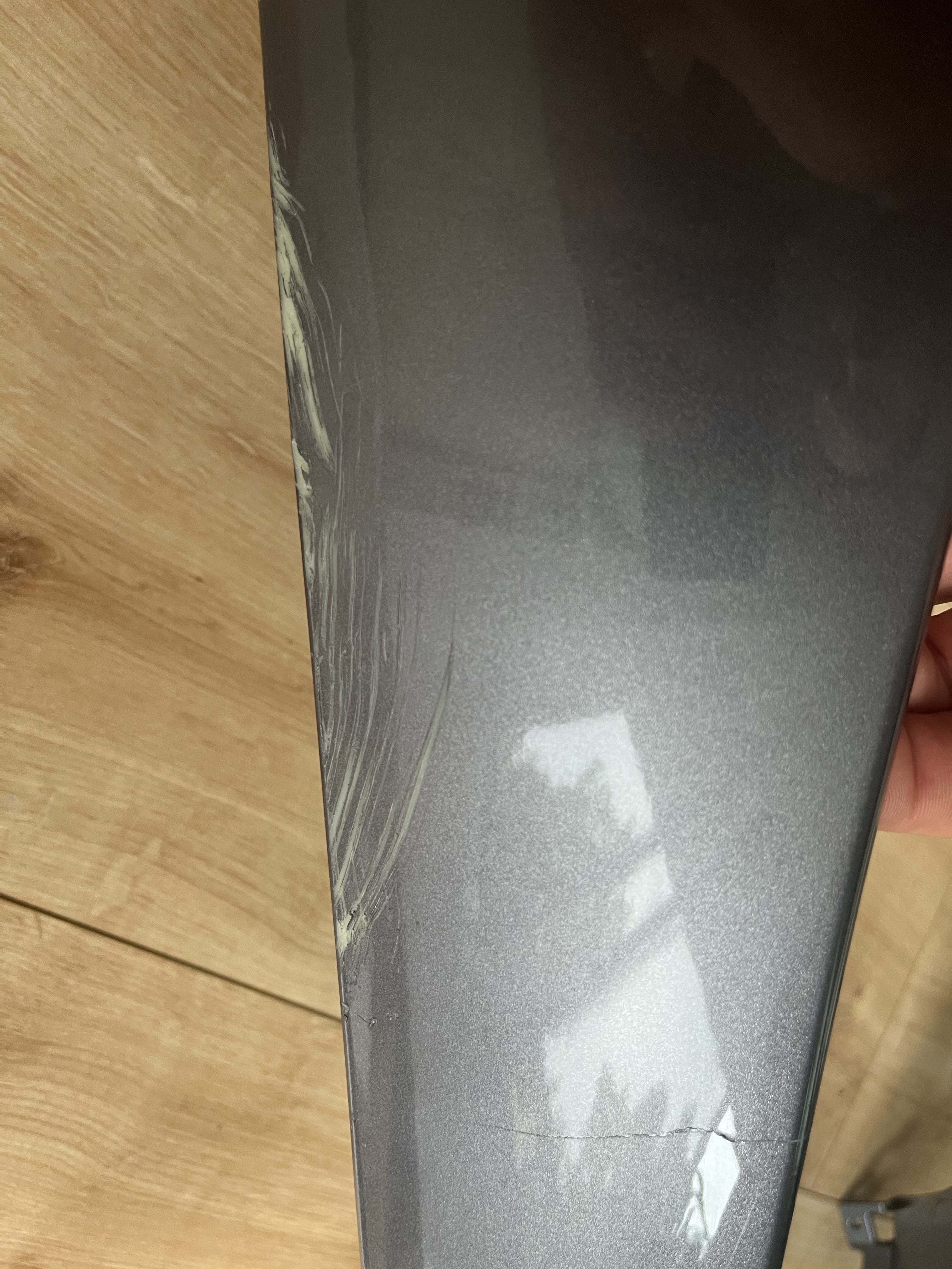 Da der Roller einmal umgefallen ist, sind einige der Teile beschädigt. Fünf der acht Teile sind ohne nennenswerte Schäden. Drei Teile auf der Seite rechts sind beschädigt.