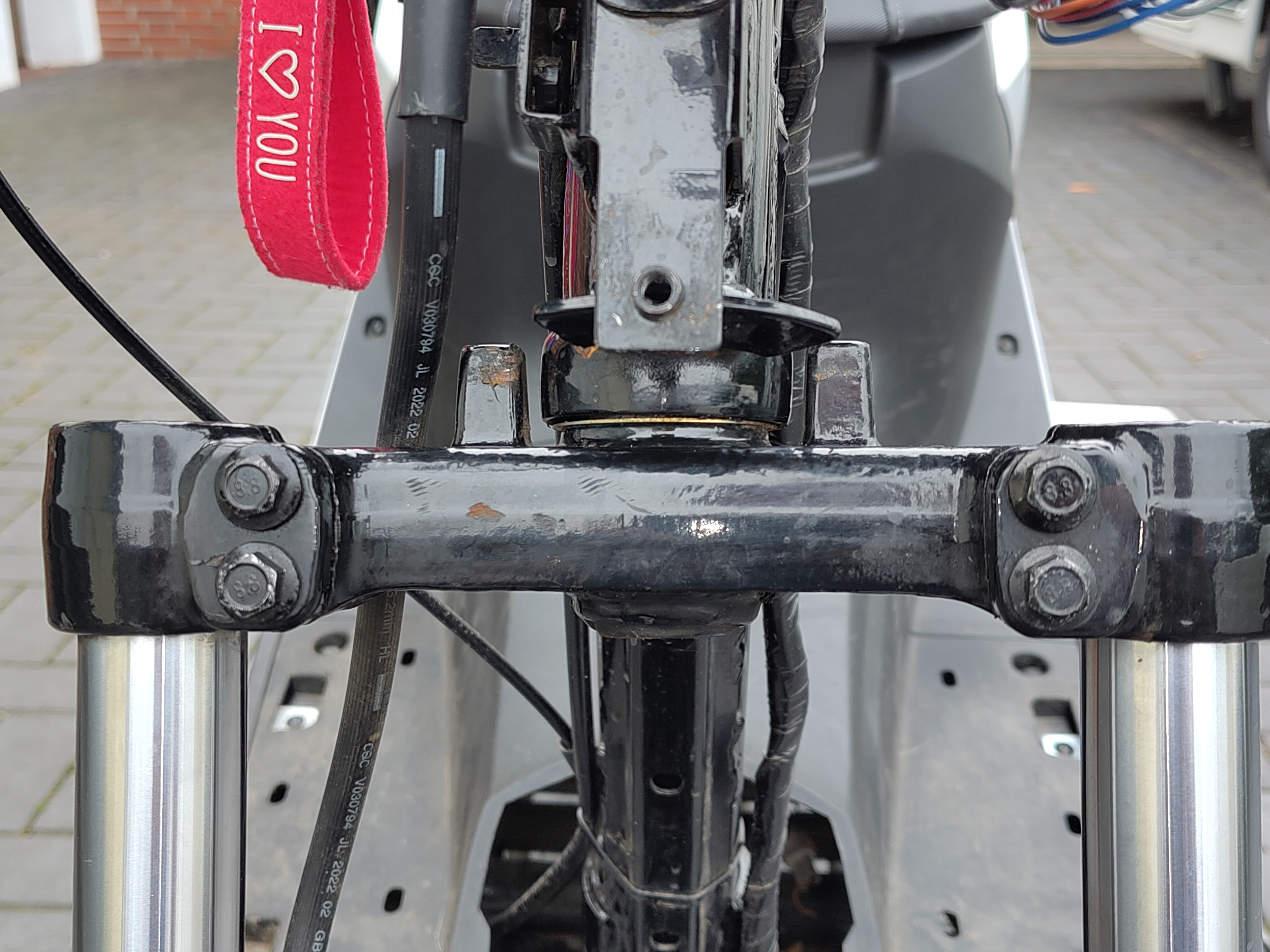 Mein Sohn hatte einen Sturz mit der SK1 - dabei ist der Roller an einen Bordstein geschlittert, und hat so hart mit dem Vorderrad gegen den Lenkanschlag am Rahmen geknallt, dass der Lenkanschlag das lenkerrohr unten am Rahmen offenbar ausgerissen hat. Der Lenker dreht total spielfrei, aber das Rad steht halt etwas schräg, was sich in einem krassen Zug zur Seite bemerkbar macht. Muss also behoben werden.
