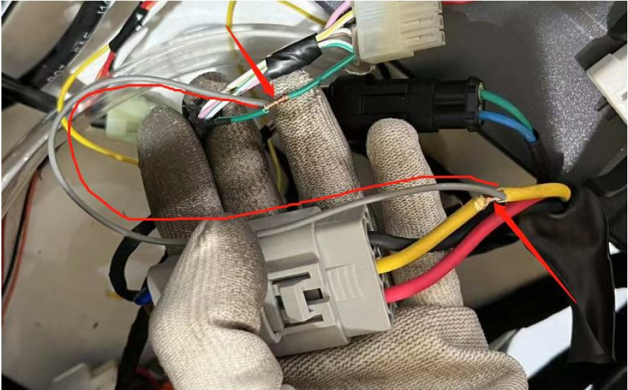Der nächste Schritt ist aber auch der Letzte und der Oberknaller. Wie in der Abbildung gezeigt, verbinden Sie an der anderen Seite des 3 löchrigen Steckers eine zusätzliche Leitung mit der gelb-grünen Leitung und verbinden sie mit der grünen Leitung im gesamten Fahrzeugkabelbaum.