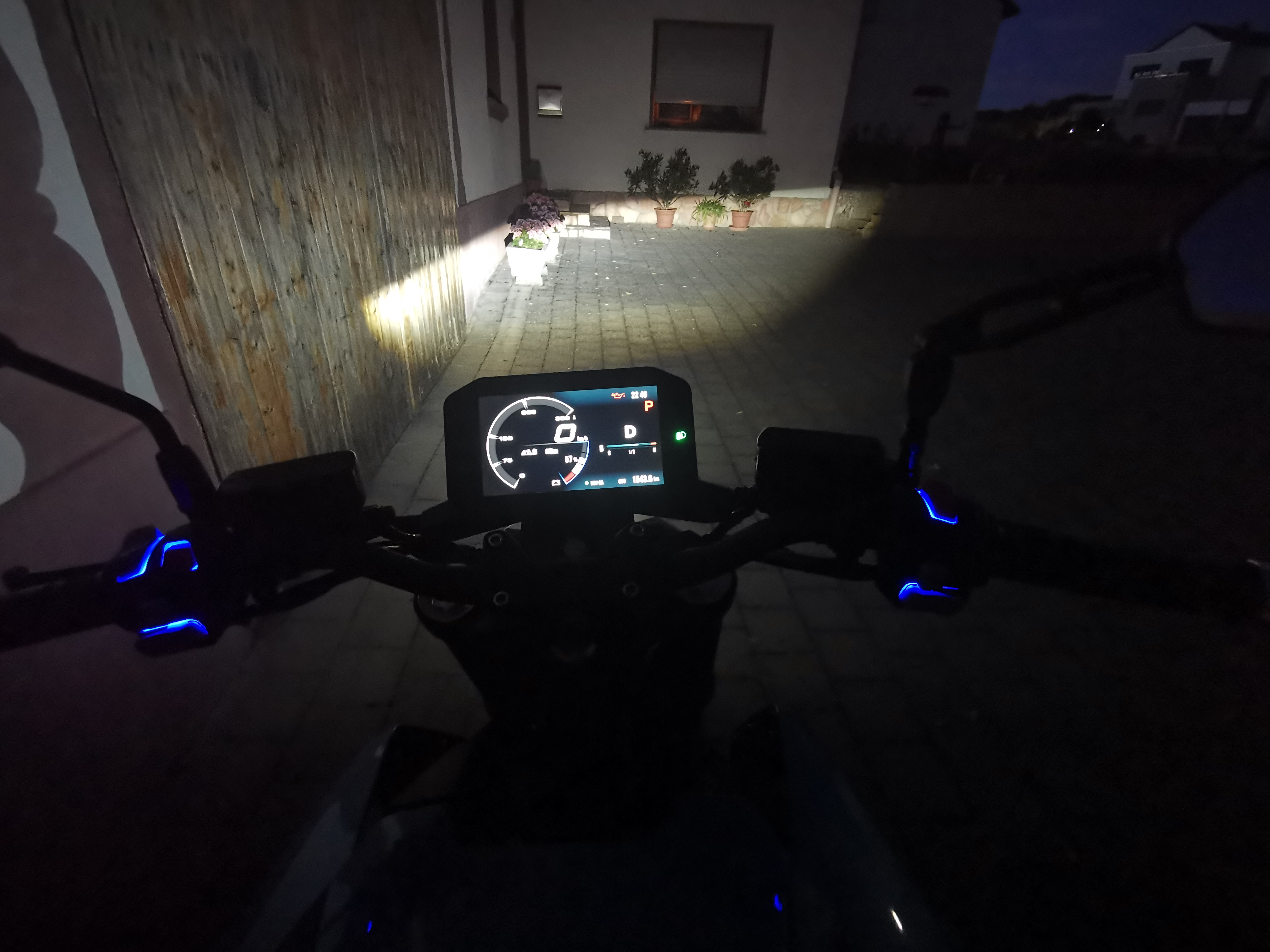 Im Anschluss noch ein Foto des Lenkers und Displays der Tinbot in der Dunkelheit. LG