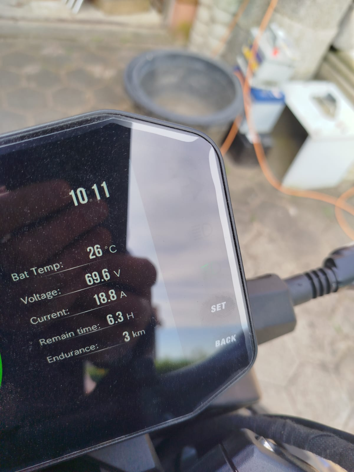 Heute habe ich mal die Tinbot leer gefahren. Mit den Standarteinstellungen lässt sie dich bis auf 1% leer fahren, die Akku Spannung sinkt dabei auf 66,7V und die Maschine fährt ab 3% nur noch maximal 58km/h laut Tacho.