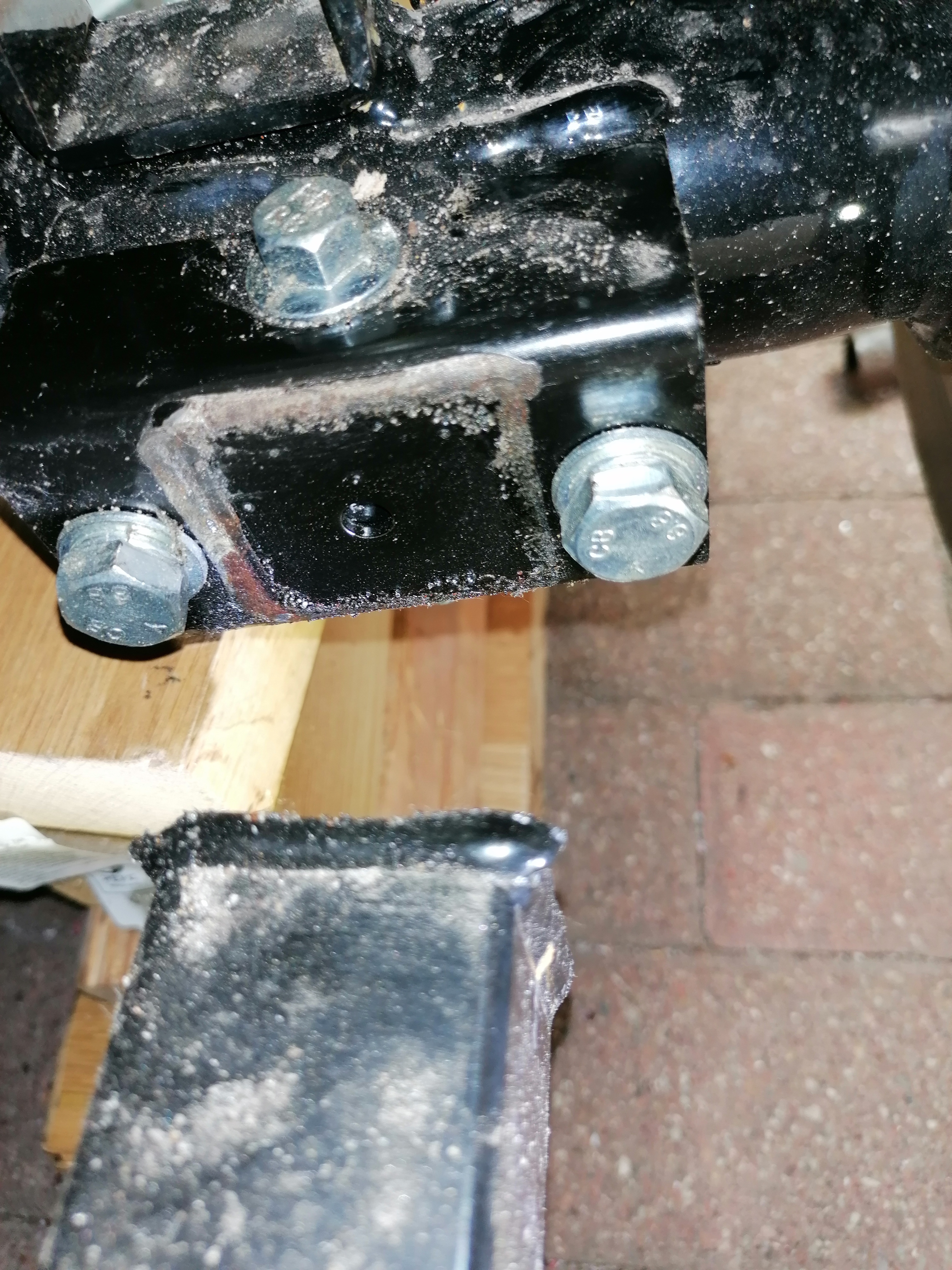 Heute vormittag Grünzeug weg bringen und auf dem Rückweg von der annahmestelle tat es einen knall und das linke Hinterrad stand schief. Zu Hause angekommen Rad demontiert und siehe da Achsaufhänguung abgerissen.