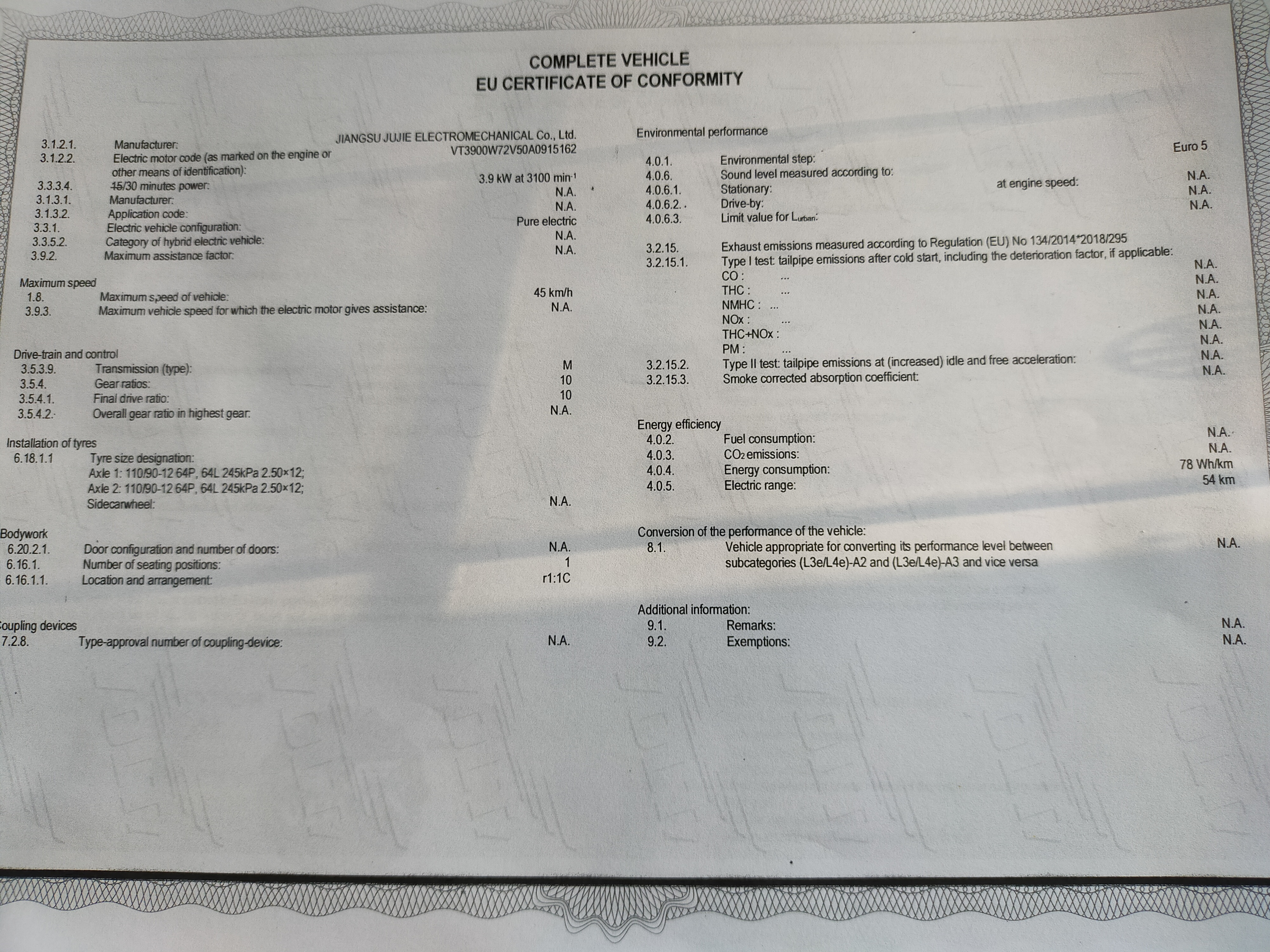 Heute, den 14.05.2024, wurde 14:30 Uhr der von mir am 26.04.23 gekaufte VT5+ mit Offroadbereifung geliefert mittels eines sehr kleinen LKW mit für den 3 Meter langen VT5 zu kürzen LKW- Klappen Entladebühne. Ich mußte den VT5 selbst abladen, weil der Fahrer gar nicht wußte, wie er diesen entladen sollte. Der VT5 wurde nicht auf einer Palette angeliefert, sondern unverpackt auf seinen eigenen Rädern stehend. Ich gab dem Fahrer Anweisung die Laderampe ca. 30 cm abzusenken. Ich zog den auf seinen Rädern rollenden VT5 auf die Ladebühne bis die Hinterräder vom LKW auf die Bühne heruntergesprungen sind. Gab Anweisung die Bühne gleichzeitig abzusenken währen ich den VT5 weiter auf die Bühne zog, so daß er schräg nach oben mit den Vorderrädern noch auf dem LKW, Hinterräder auf der Bühne, dann zog ich die Vorderräder vom LKW und die Hinterräder auf den Erdboden( Grasfläche). Das Vorderrad sprang gleichzeitig auf die Bühne und die Hinterräder auf die Erde. Weiter Bühne abgesetzt und VT5 runtergezogen. Abstand Motor - Bodenfreiheit habe ich zuvor als ausreichend abgeschätzt.