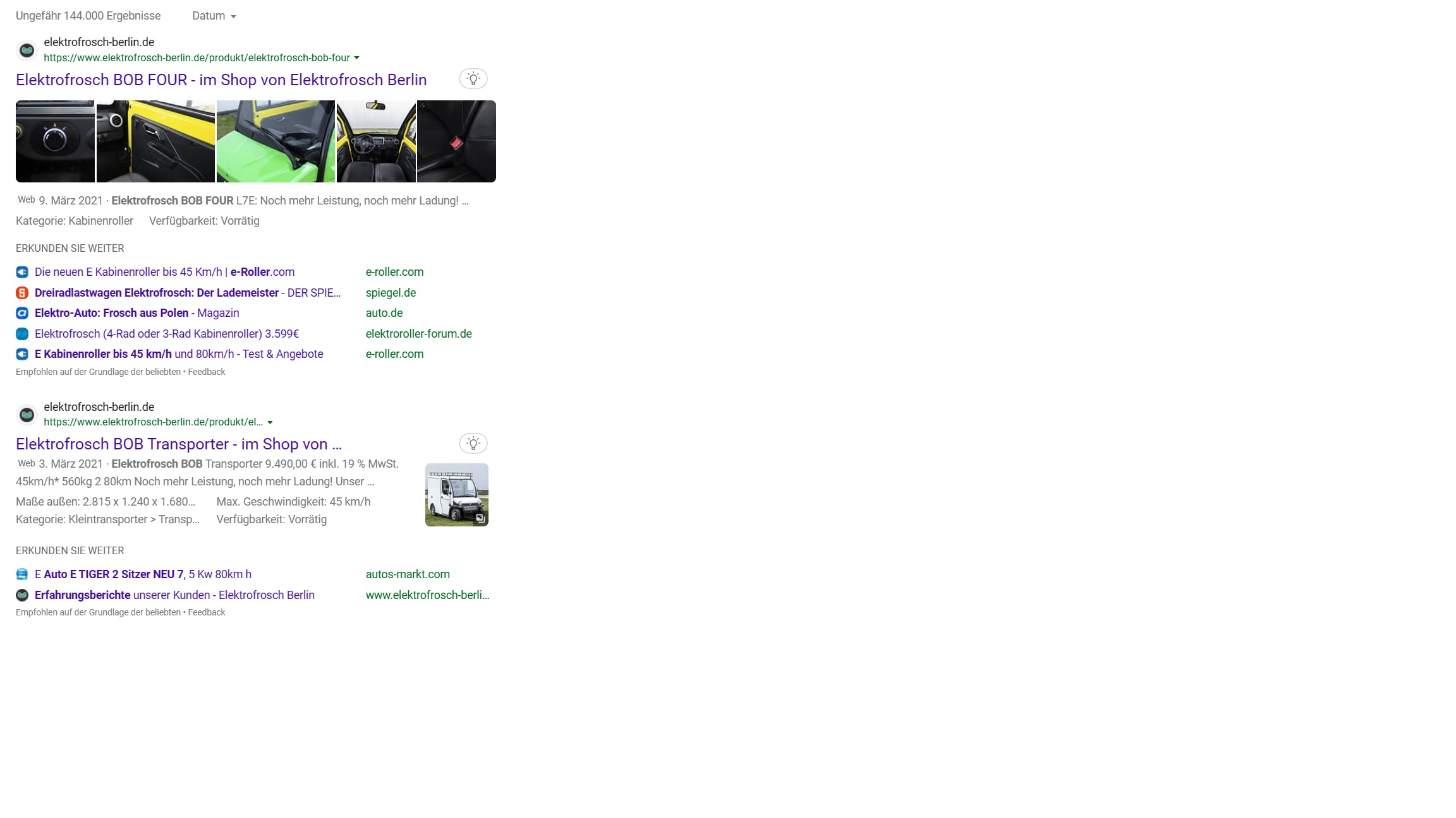 Es ist keine gute Idee, einen verblichenen Einzelunternehmer mit dem Namen eines Produktes zu bezeichnen, welches derweil noch von anderen, eigenständigen, also mit diesem Mann nicht irgendwie verbandelten, Händlern angeboten wird. So fände der Reputationsschaden für die anderen Betriebe, die mit der Pleite nichts zu tun haben, nie ein Ende, zumal die auch noch andere Marken im Angebot haben.Onkel_Otto hat geschrieben: ↑Sa 26. Aug 2023, 10:51emobil-bm gibt es noch, obwohl die Webseite immer noch nicht aktualisiert ist. Der Schaden durch EF bei ihnen ist gewaltig, aber wäre bedeutend größer gewesen, wenn die Jungs nicht rechtzeitig die Bremse bei EF gezogen hätten.