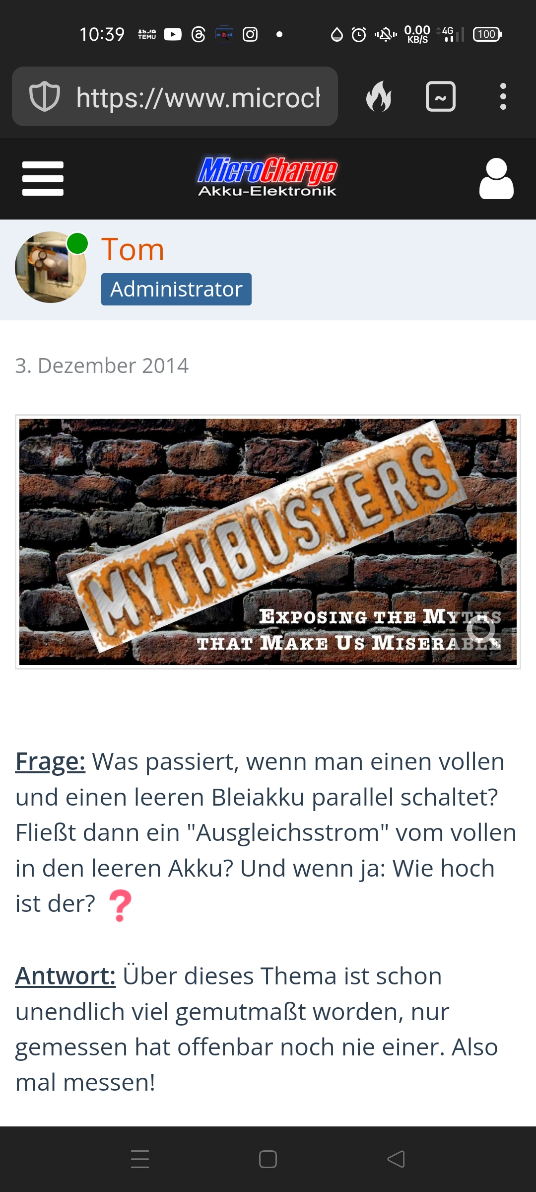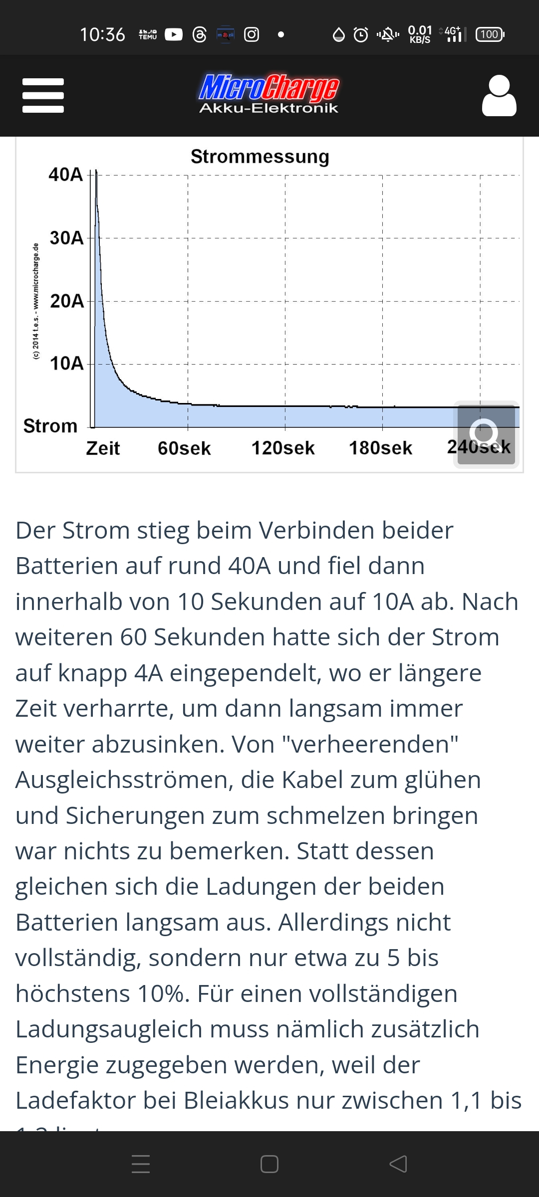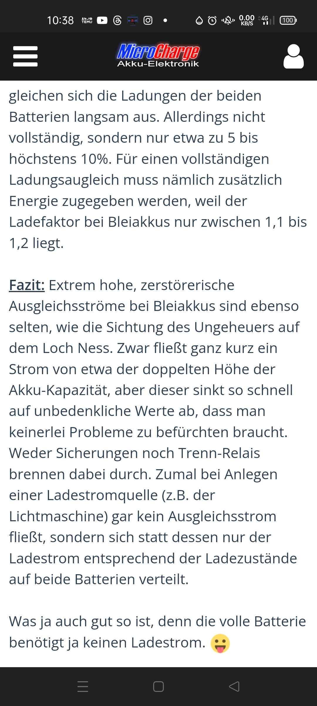 Das kommt auf den Laderegler, die Batterie und vor allem auf das Fahrverhalten an. Wenn man so lange Strecken ohne Pause fährt, dass das Nachladen zu langsam ist dann ist die kleine Batterie eh leer gesaugt. Wenn ich das richtig verstanden habe hat er ja Bleibatterien die dürfen ja eh nicht so leer werden.Schnabelwesen hat geschrieben: ↑Di 28. Mai 2024, 11:33Ja, das geht natürlich auch. Es könnte nur sein, dass das Nachladen langsamer geht als das Entladen.