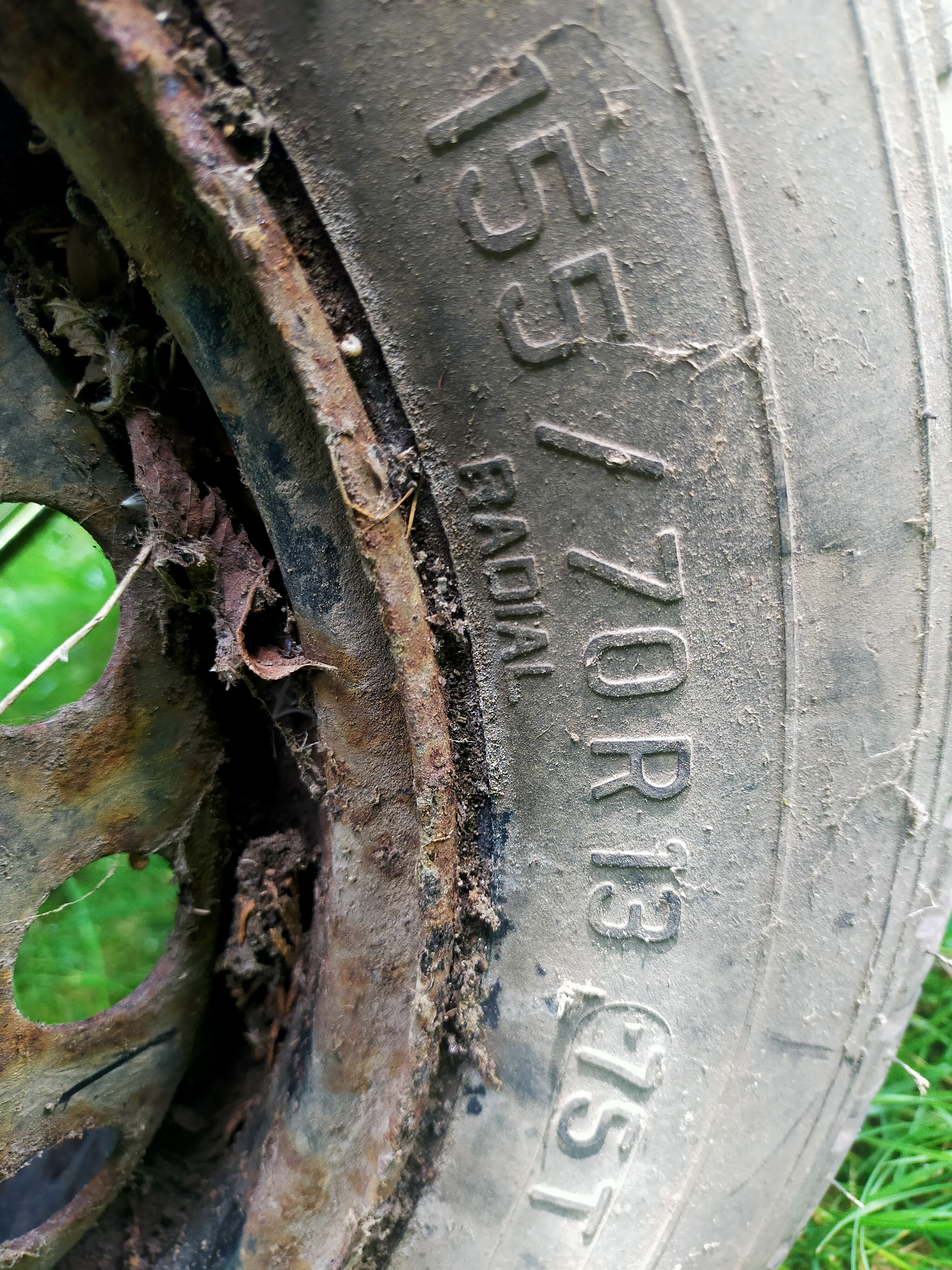 ein 155/70 R13 (13 Zoll Rad eines Renault Clio Baujahr 1997) passt zwar auf die Radbolzen und das Mittelloch, jedoch ist das Rad zu breit für die Bremsstangen und das Radschutzblech ist zu schmal, müßten abgebaut werden...Also als Reserverad nicht zu gebrauchen.