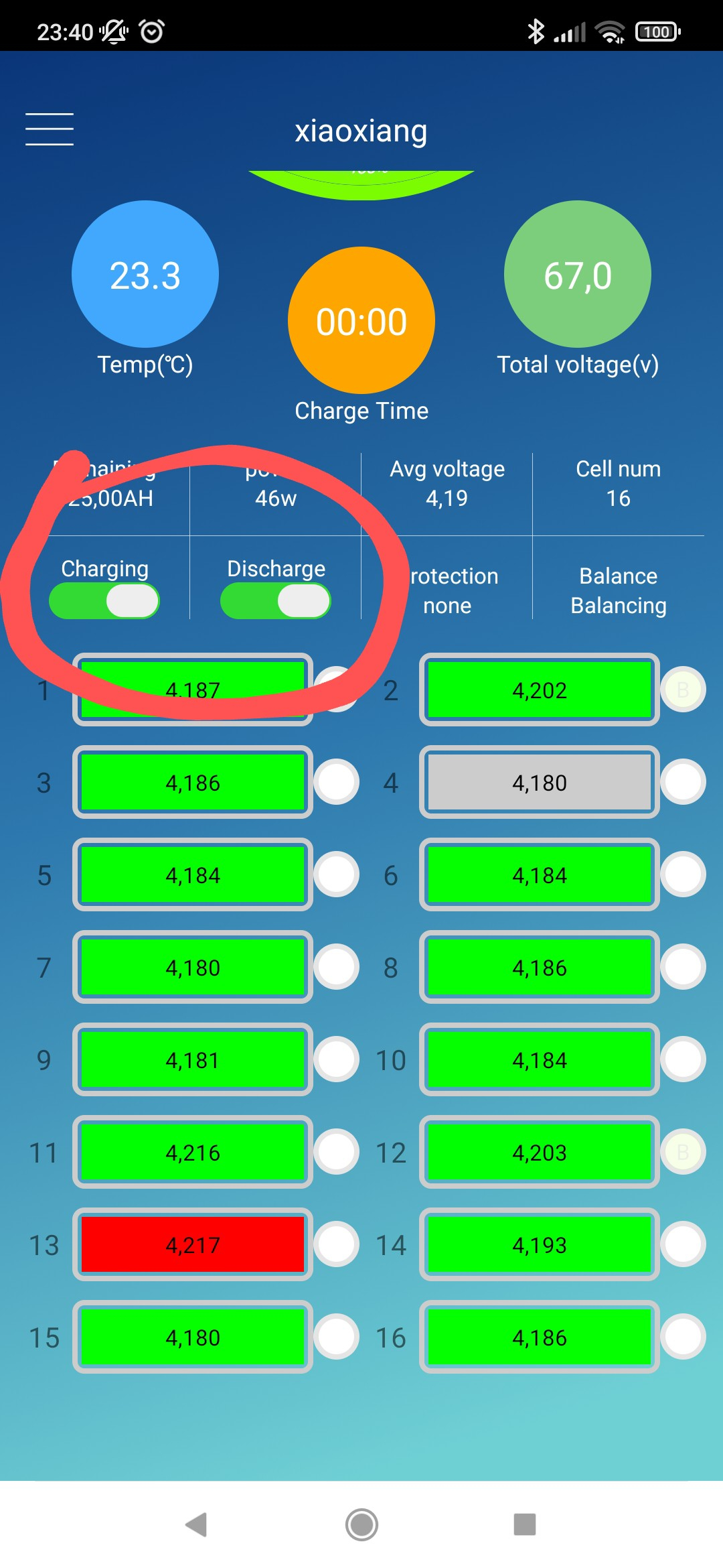 Irgendwo in den settings des Xiaoxiang BMS sollte man die max, Ah auf 100Ah (Batteriekapazität) setzen können.