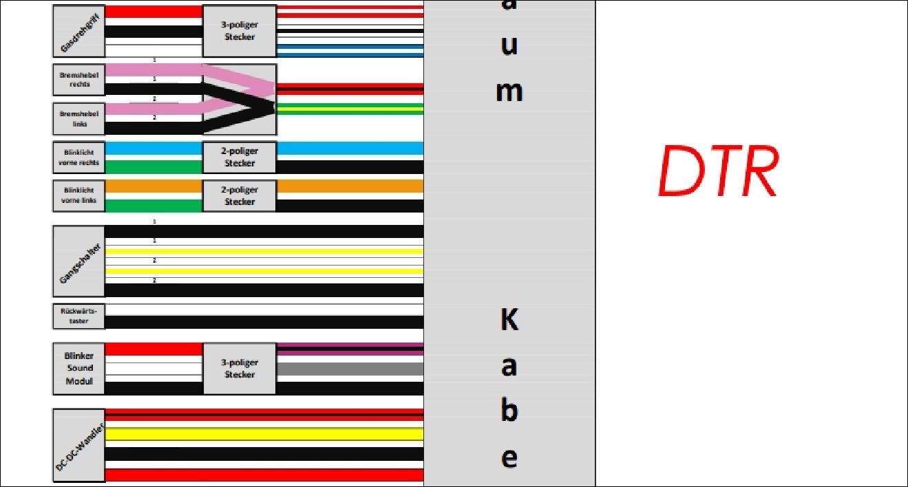 müssen die Bezeichungen der Standardbelegung hier nicht unbedingt zutreffen. Der Kabelplan, den ihr hier für den DTR erarbeitet habt ist natürlich super. Bei den Controller-Schaltfunktionen wäre aber zu testen, ob der Standard-Belegungs-Plan der Funktionen die tatsächliche Belegung auch wiederspiegelt.