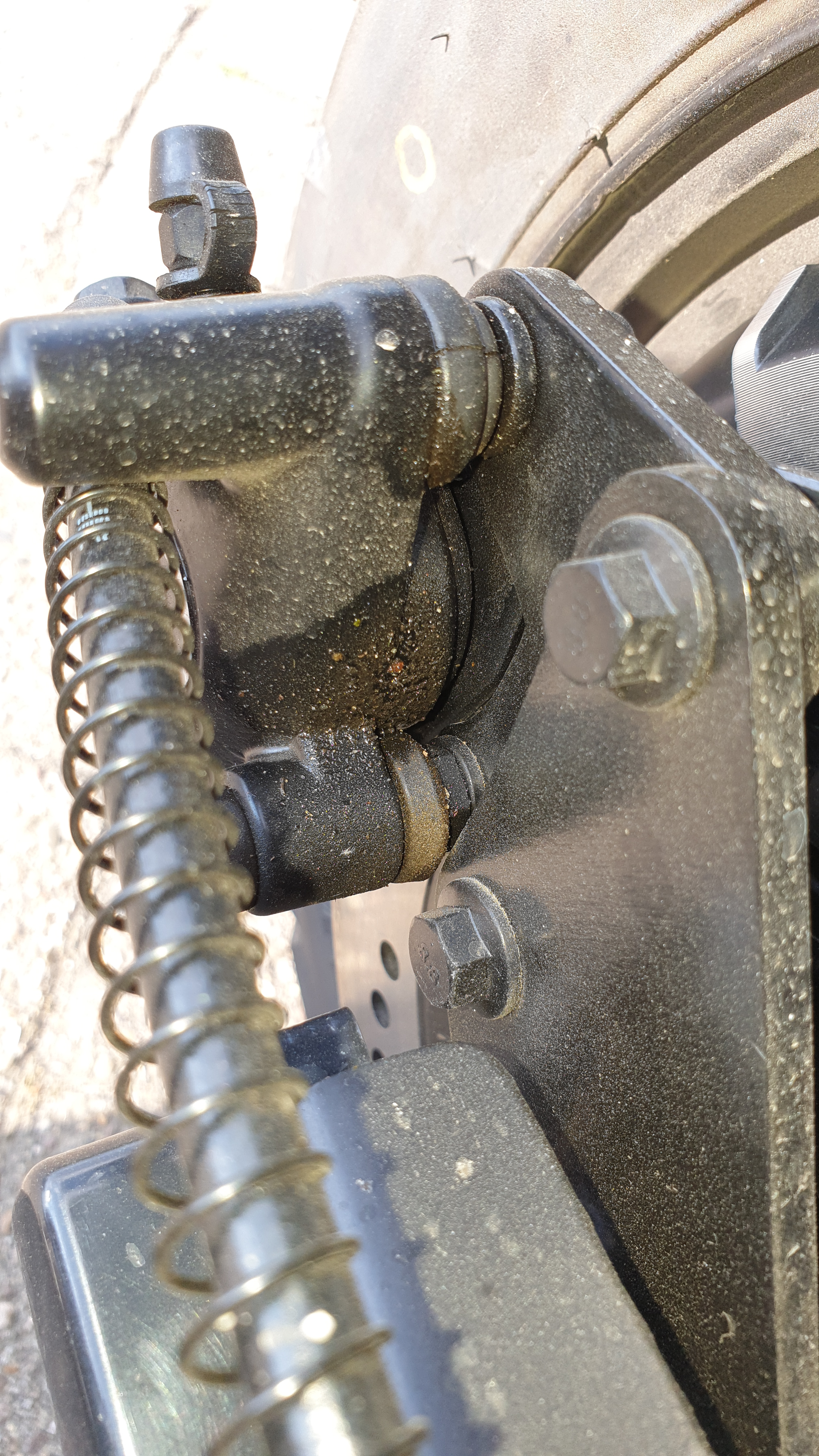 Hallo, habe bei meinem DTR Roller heute gesehen, dass der Bremszylinder am Hinterrad Bremsflüssigkeit zu verlieren scheint. Da hat sich schon ein kleiner Tropfen am tiefsten Punkt angesammelt siehe Fotos ... habe jetzt so 315km insgesamt gefahren, am Anfang war da keine Bremsflüssigkeit zu sehen. Was meint Ihr dazu? Außerdem ist mir beim Lauf des Hinterrades (auf dem Mittenständer hoch und dann Gas gegeben) aufgefallen, dass der Hinterradreifen ca. 2mm Höhenschlag und 2-3mm seitlich eiert. Beim Fahren merkt man es selber kaum bis gar nicht, aber im Stand fängt das ganze schon stark an zu vibrieren, ich denke es liegt nicht daran, dass der Reifen noch nicht ganz im Felgenbett sitzt, der vordere Reifen läuft auch etwas unrund, aber hinten ist es deutlich ausgeprägter, habe auf beiden Reifen 2,3 bar Luftdruck drauf ... VG