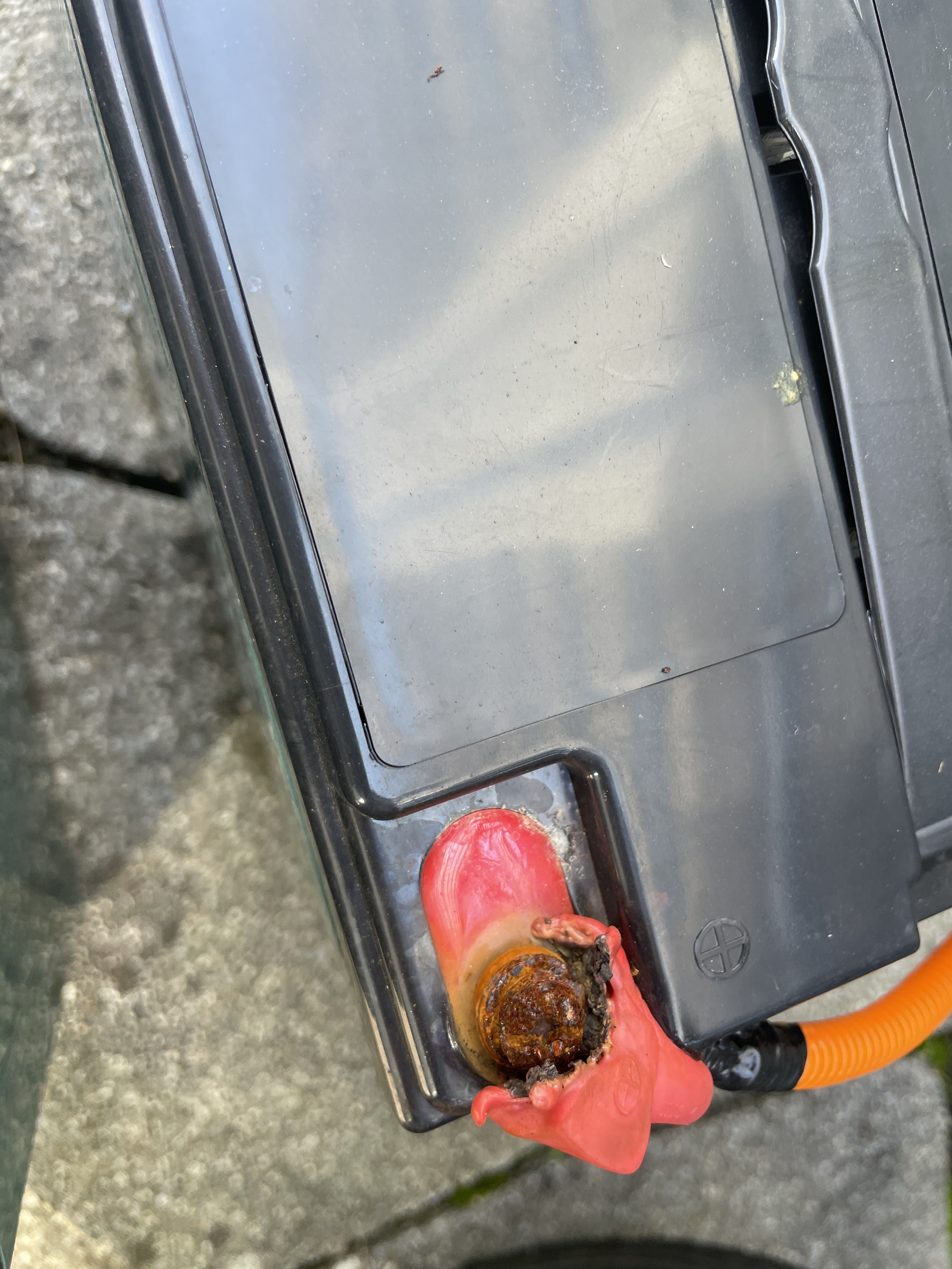 da der DC/DC-Konverter nur für die Nebenbei-Agregate die 12-Volt-Stromversorgung (Beleuchtung, Radio, Zentral-Veriegelung usw.) sicherstellt und dünne Zuleitungen hat, tut man ihm ggf. Unrecht, wenn hier alleine der Verdacht lastet, an geschmolzenen Batterie-Polen Schuld zu sein.